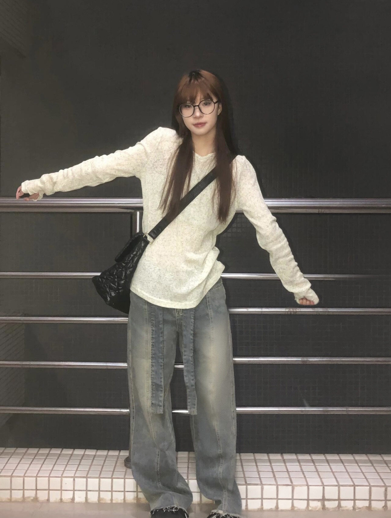 美式復古辣妹卡其色長袖防曬衣女夏季小衆寬鬆薄紗微透罩衫上衣潮