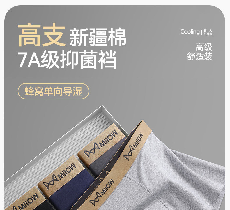貓人男士內褲男生純棉春夏四角短褲抗菌大碼透氣2025新款平角褲衩