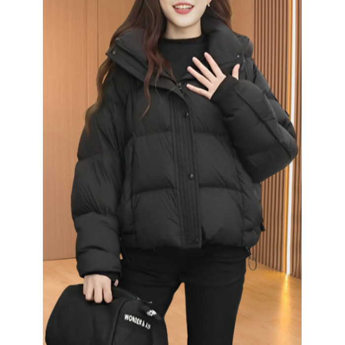 短款棉服女2024年新款春季小個子連帽寬鬆百搭加厚保暖麵包服外套