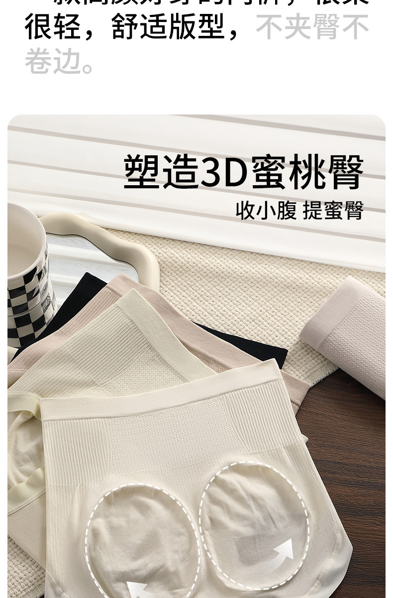 高腰收腹內褲女士10a抑菌純棉襠高彈不勒立體包臀蜜桃臀三角短褲