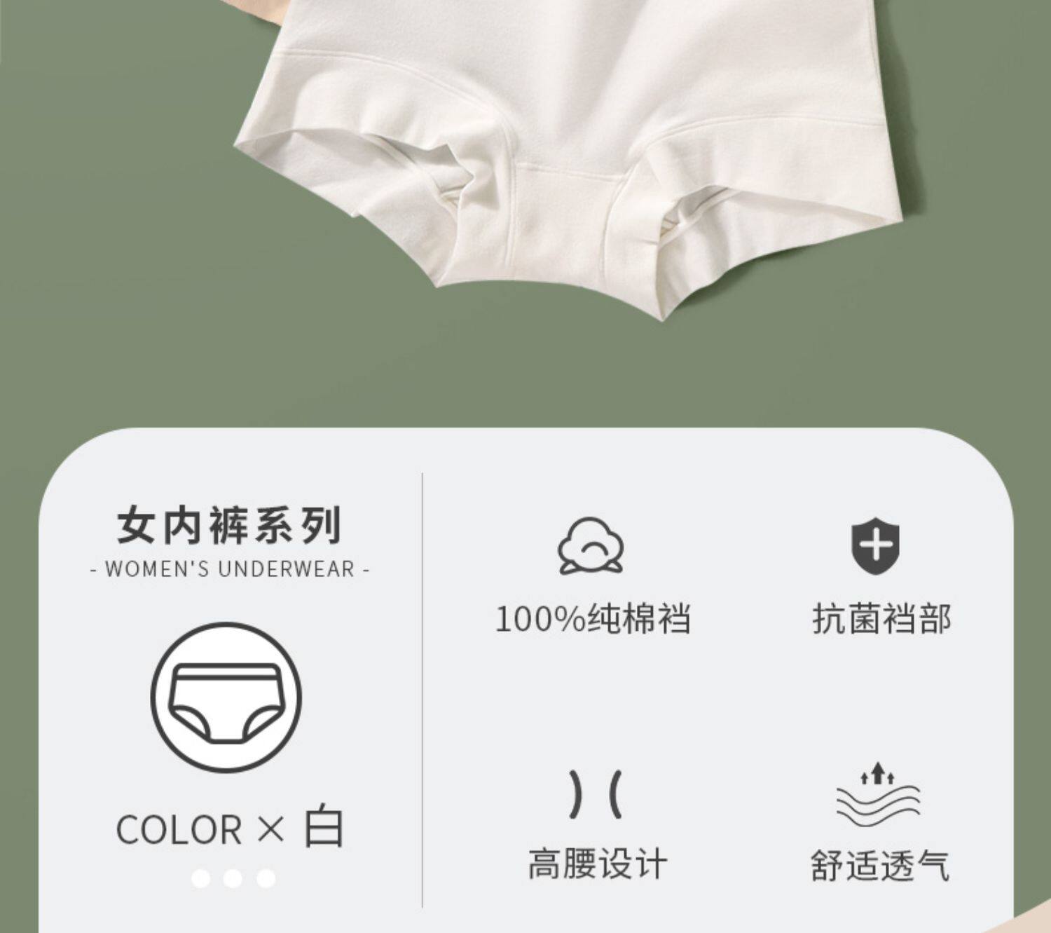 蝶安芬白色內褲女純棉100%全棉抗菌襠中高腰四角大碼無痕平角短褲
