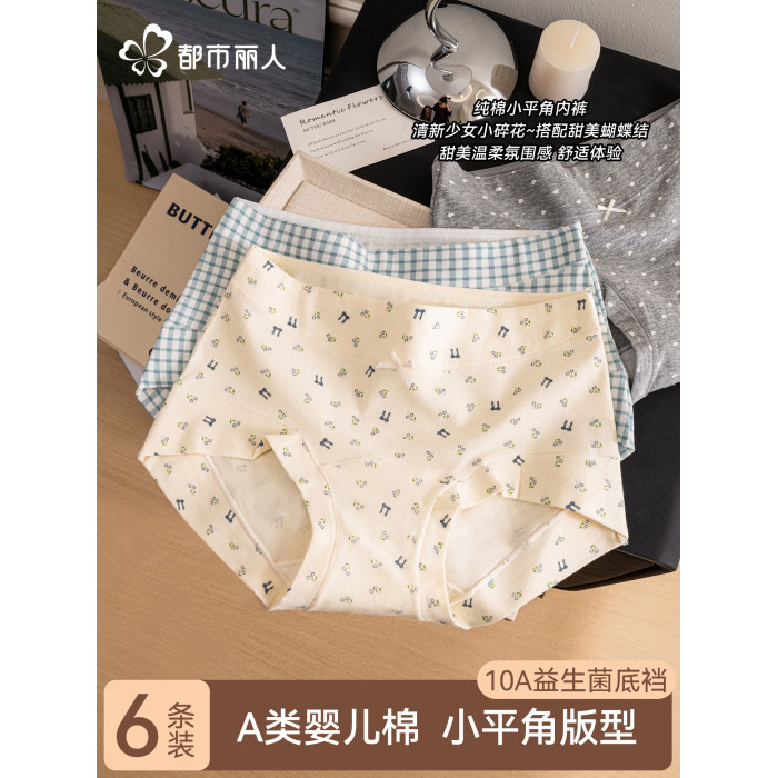 都市麗人純棉女士內褲2025新款10a抑菌加長檔包臀少女生平四角褲