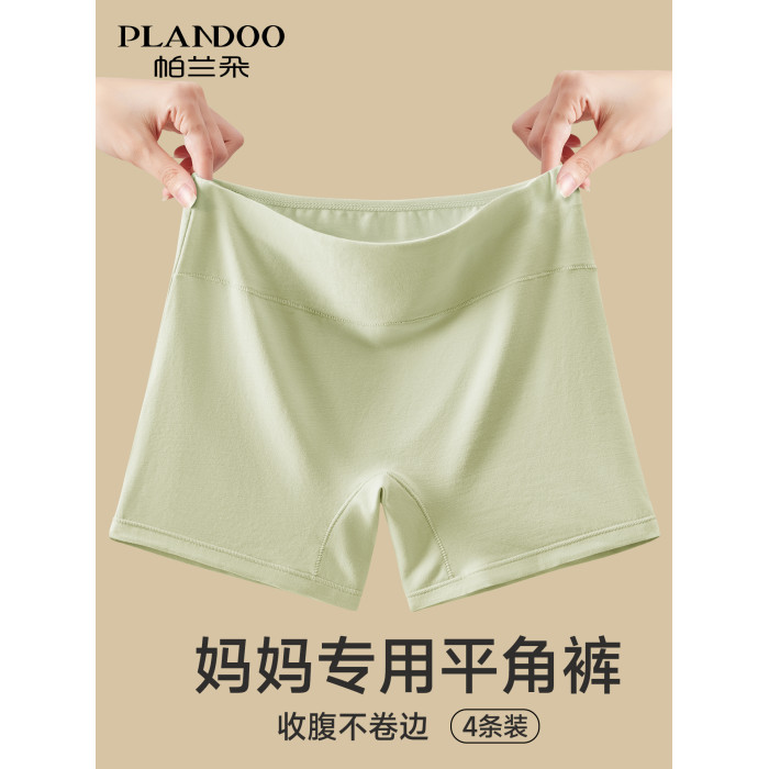 高腰平角內褲女士純棉抗菌大碼收腹中老年人媽媽四角安全褲防走光