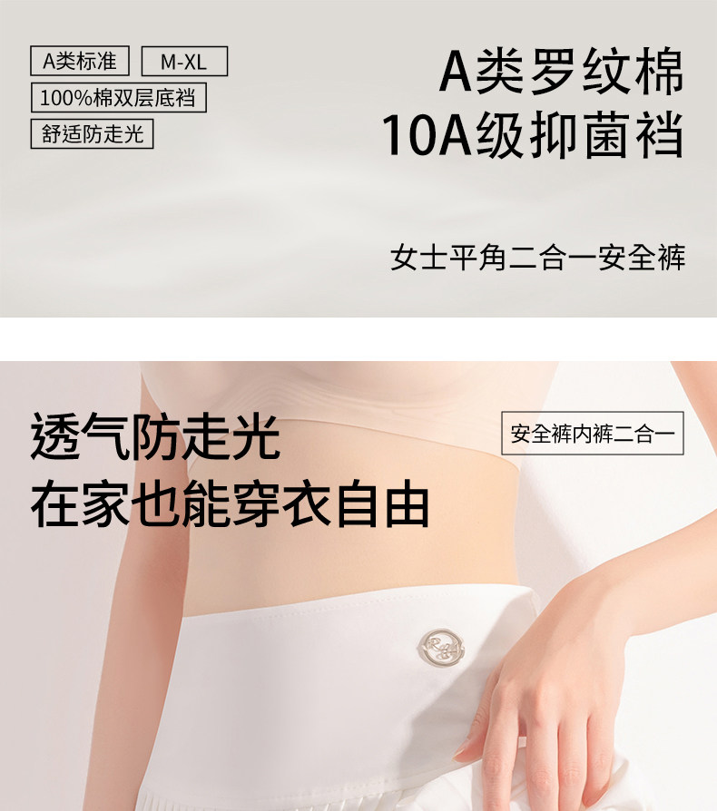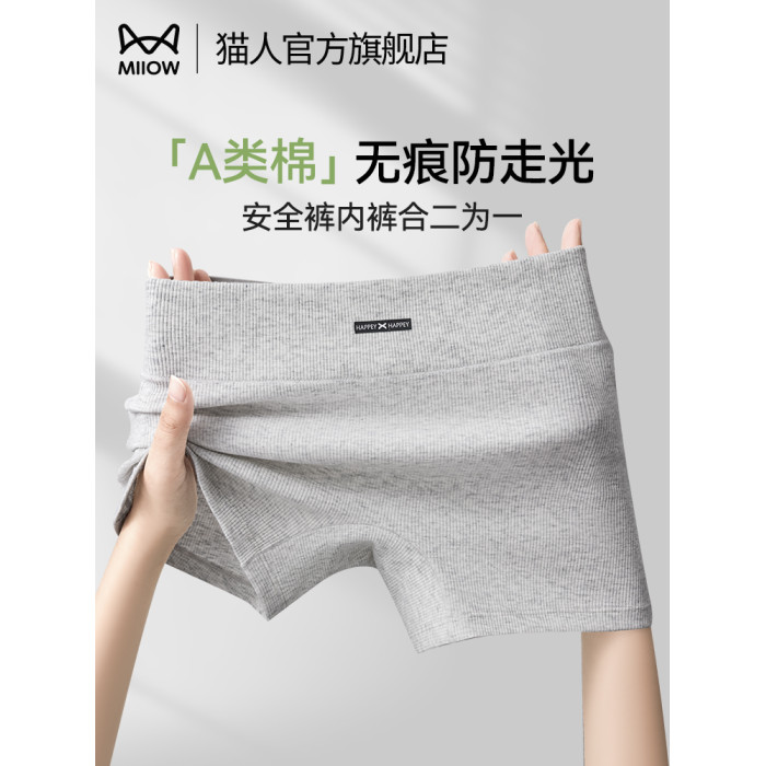 貓人純棉安全褲女防走光內褲二合一夏薄款無痕透氣女士平角打底褲