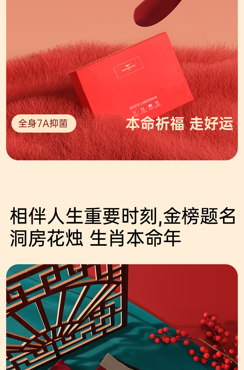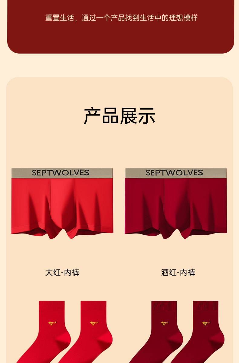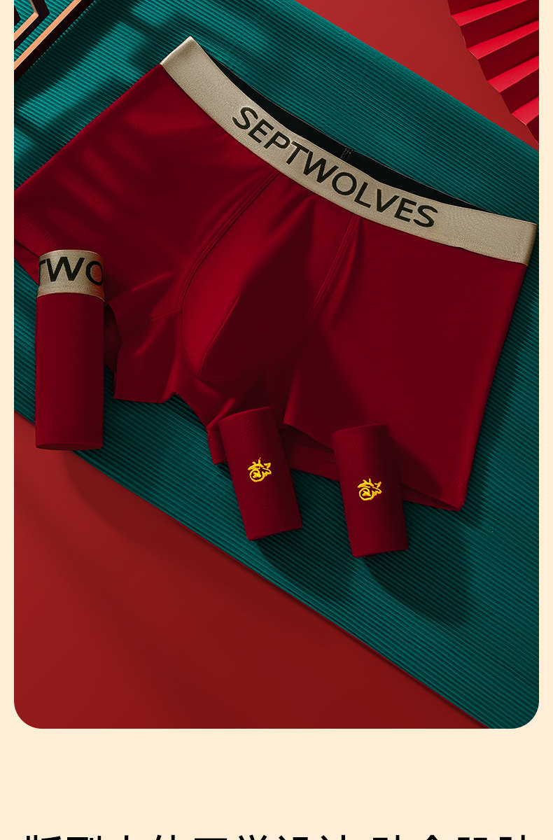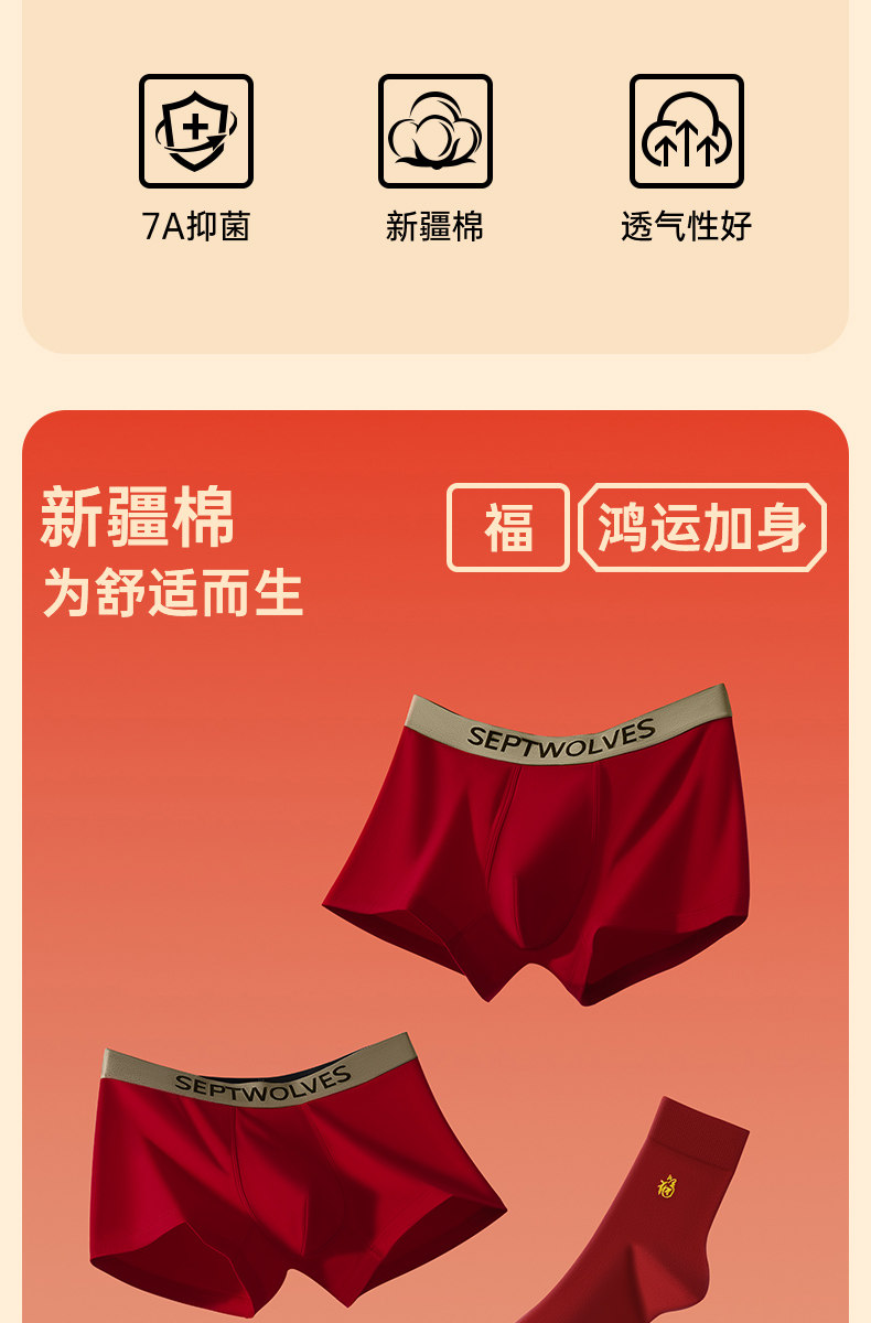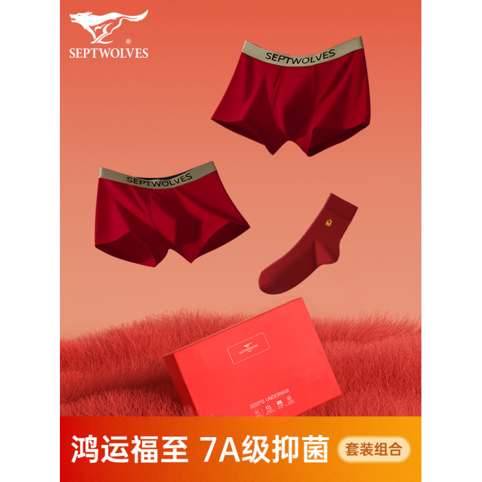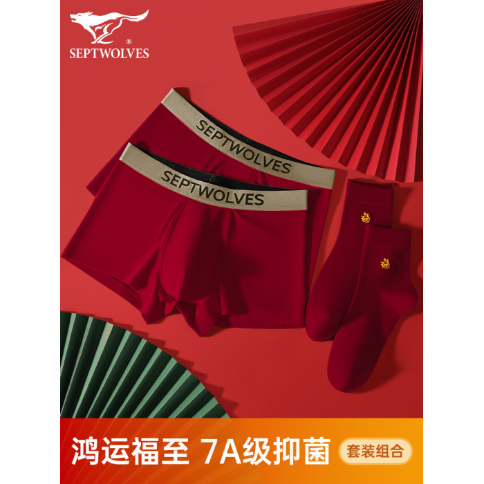 七匹狼紅色內褲男士本命年屬馬年純棉結婚底褲襪子男生短褲頭男款