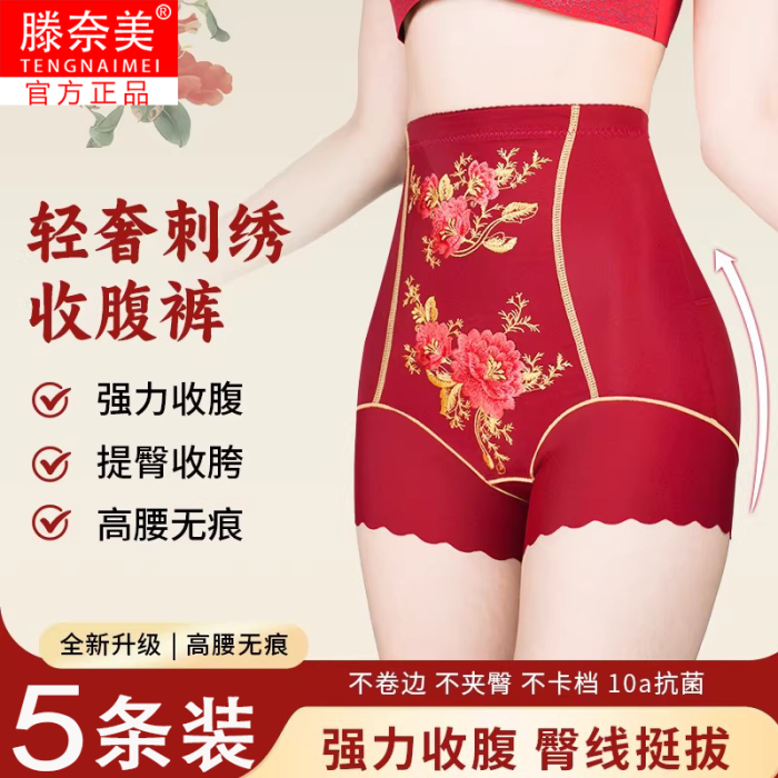 【5條裝】本命年高腰收腹褲無痕內褲女大碼女士平角褲塑形美體褲