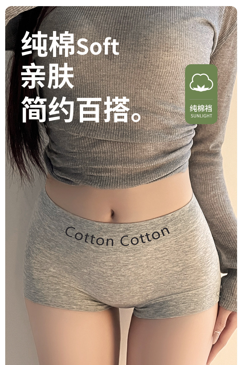 精梳純棉女士內褲女大碼2025新款灰色平角中腰運動抑菌襠四角短褲