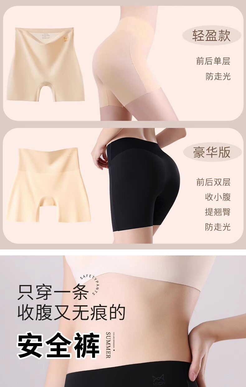 貓人無痕收腹提臀安全褲女防走光夏季薄款冰絲高腰內褲打底平角褲