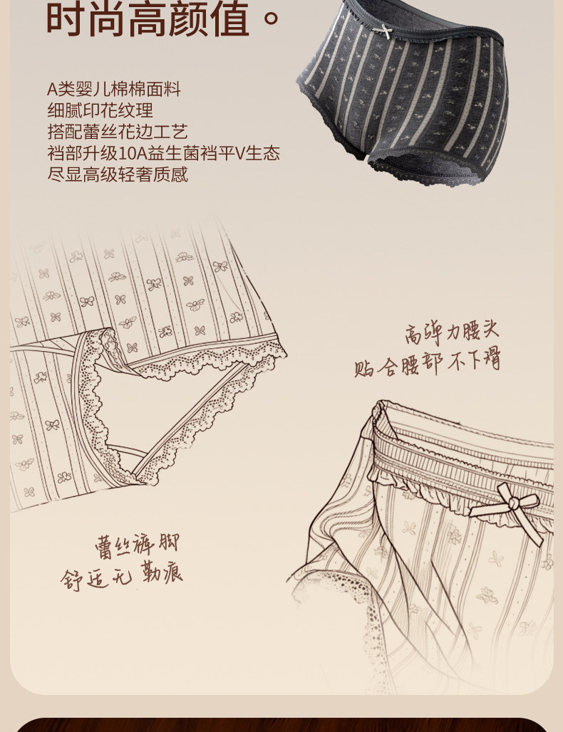 都市麗人少女內褲平角純棉a類2026新款全棉大碼女士蕾絲高腰短褲