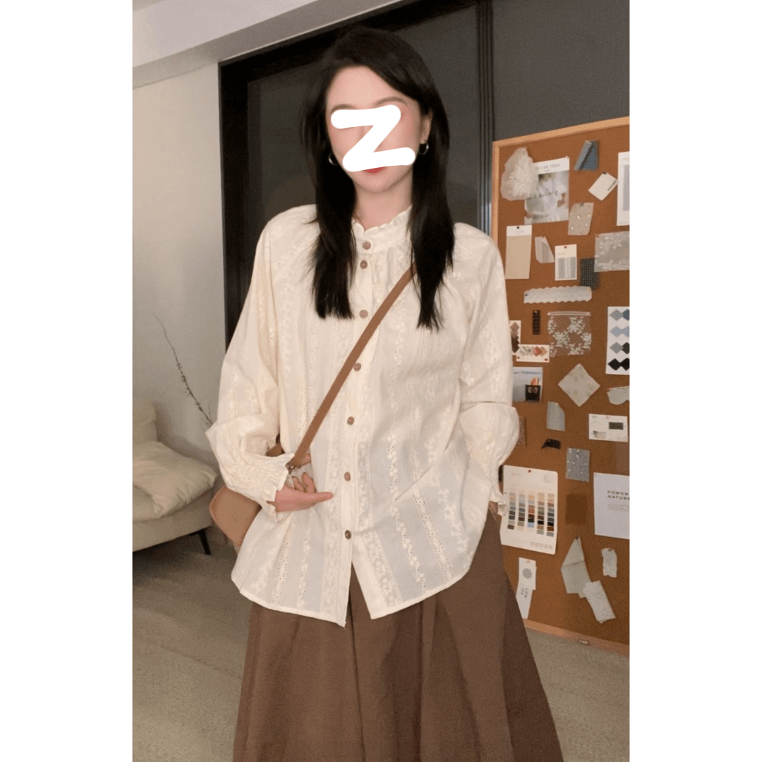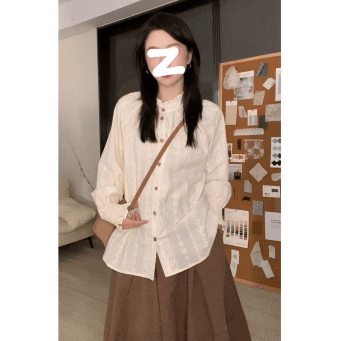 法式長袖洋氣襯衫2025秋季大碼胖MM中式復古通勤慵懶甜美女生上衣