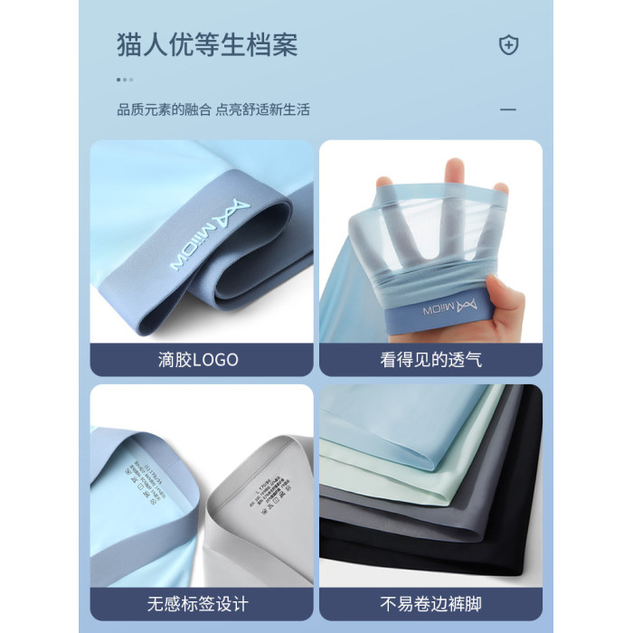 貓人冰絲男士內褲男生夏季薄款透氣青年四角褲2025新款平角短褲頭