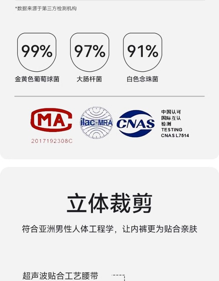 | 襠部材質成分 | 粘膠纖維(粘纖)95.8% 聚氨酯彈性纖維(氨綸)4.2% |