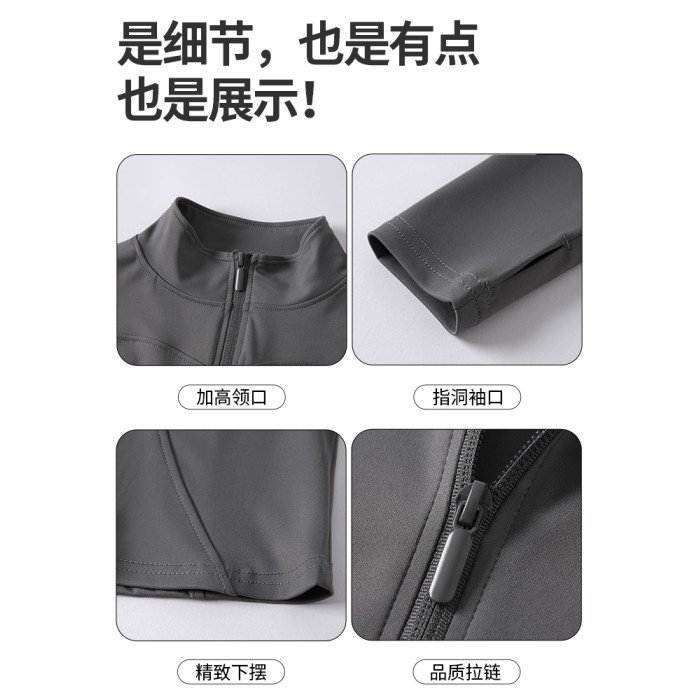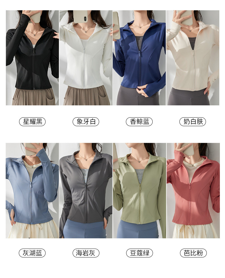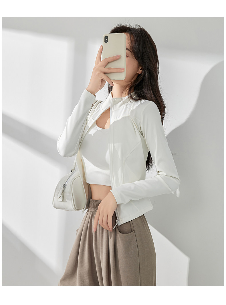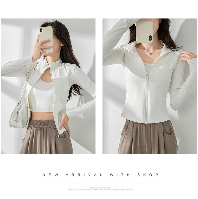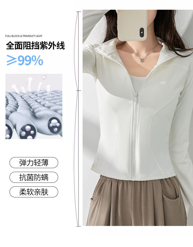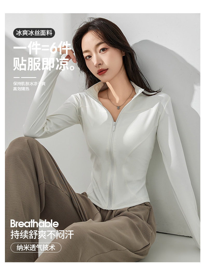白色防曬衣女夏2025新款立領收腰顯瘦開衫長袖修身防紫外線瑜珈服