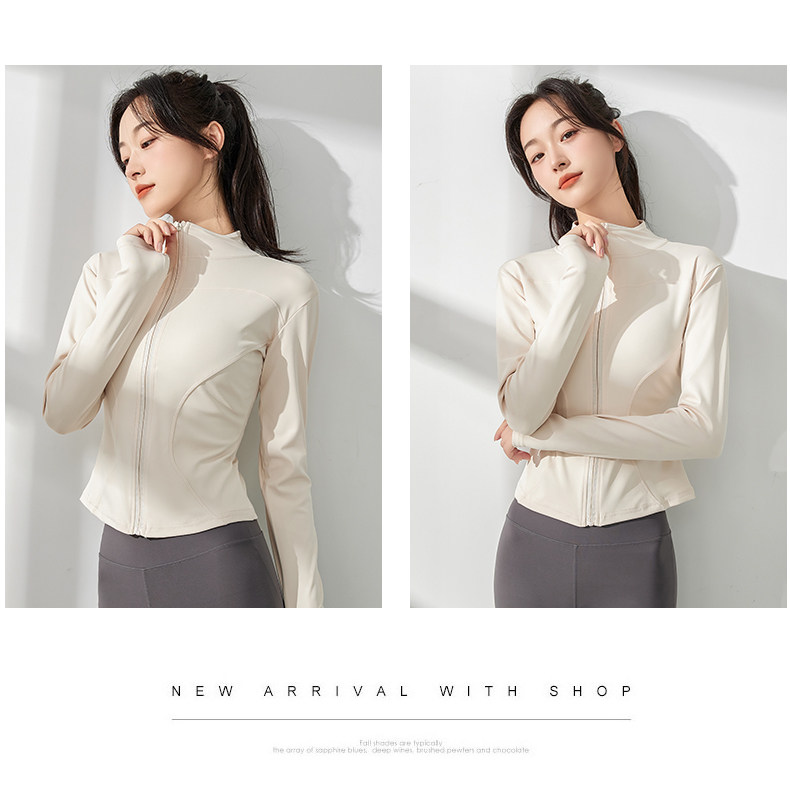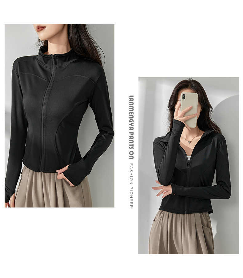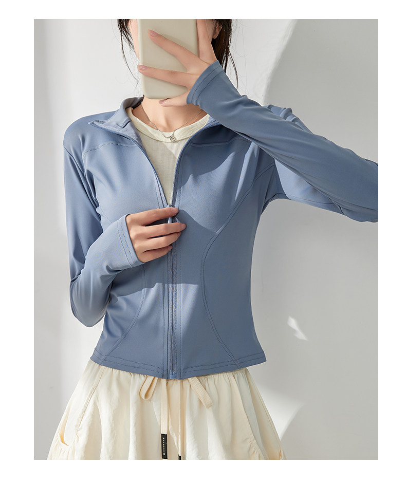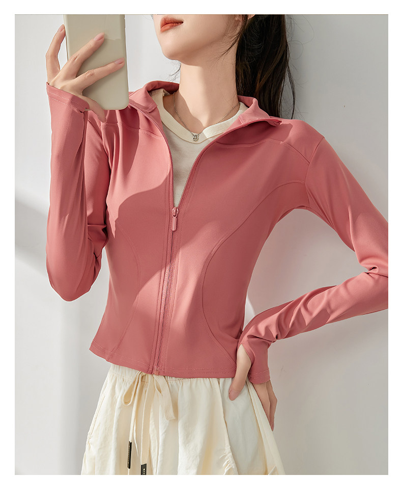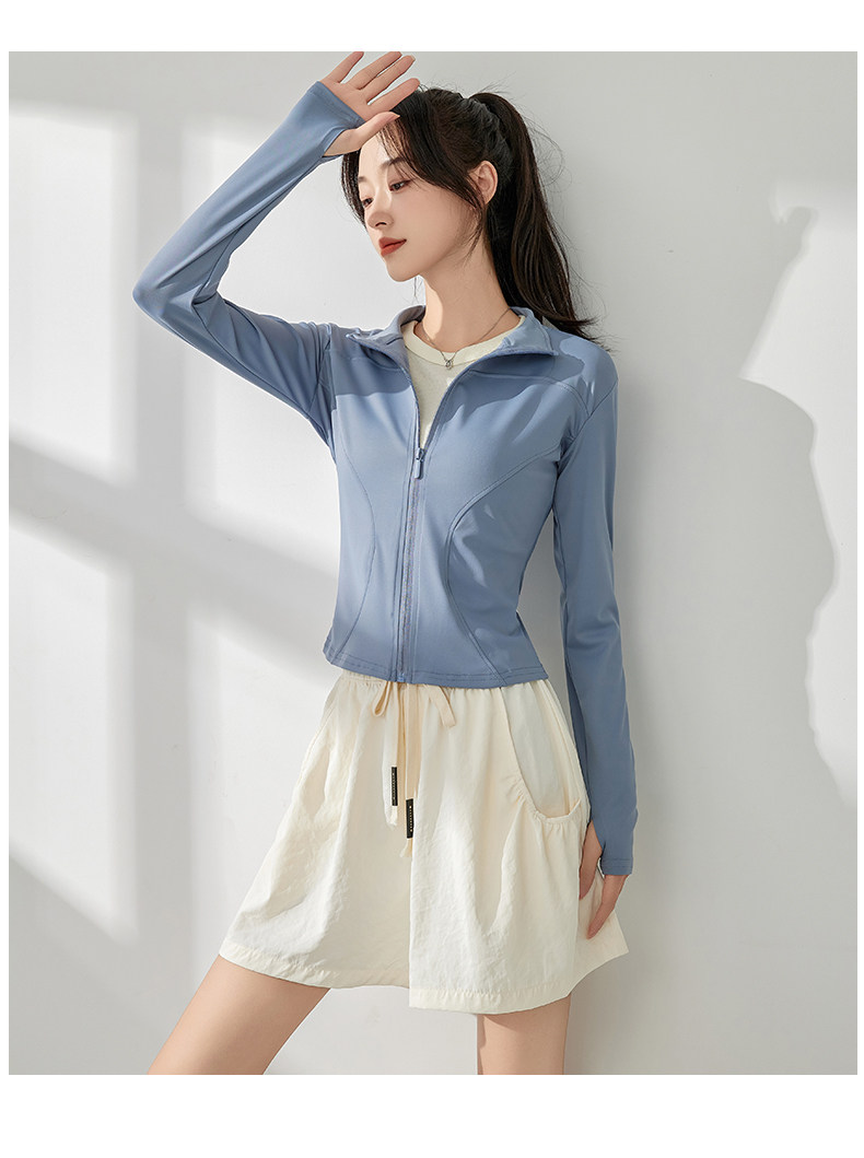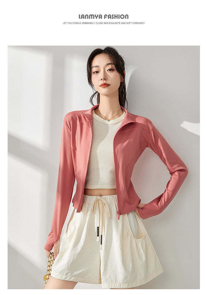 白色防曬衣女夏2025新款立領收腰顯瘦開衫長袖修身防紫外線瑜珈服
