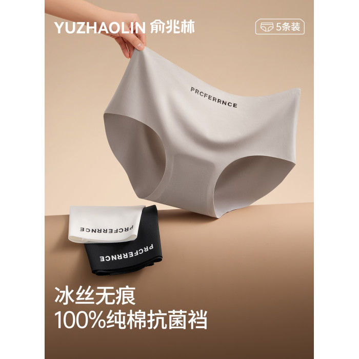 俞兆林內褲女士純棉全棉抗菌襠中腰無痕冰絲透氣瑜珈健身三角短褲