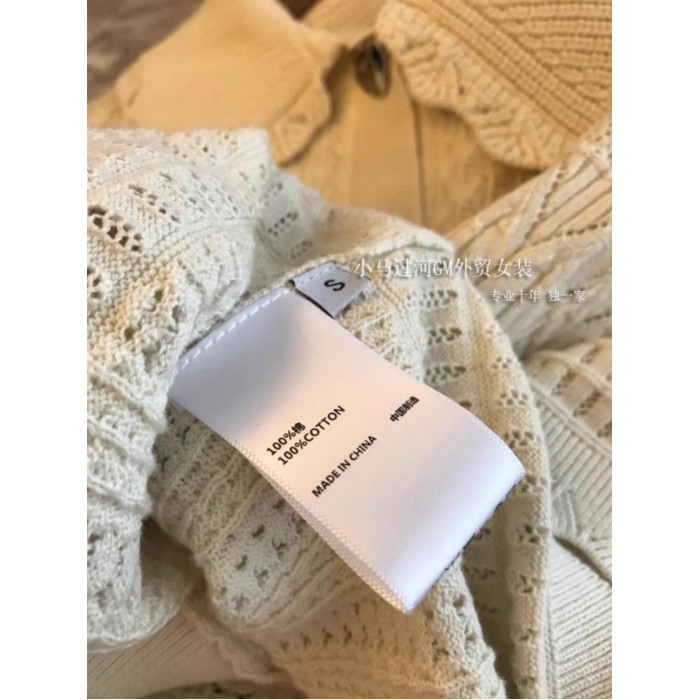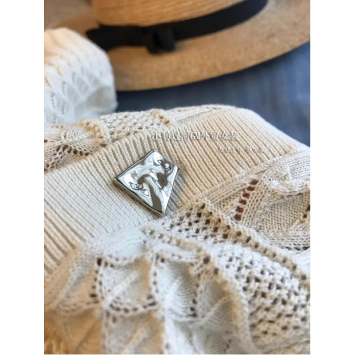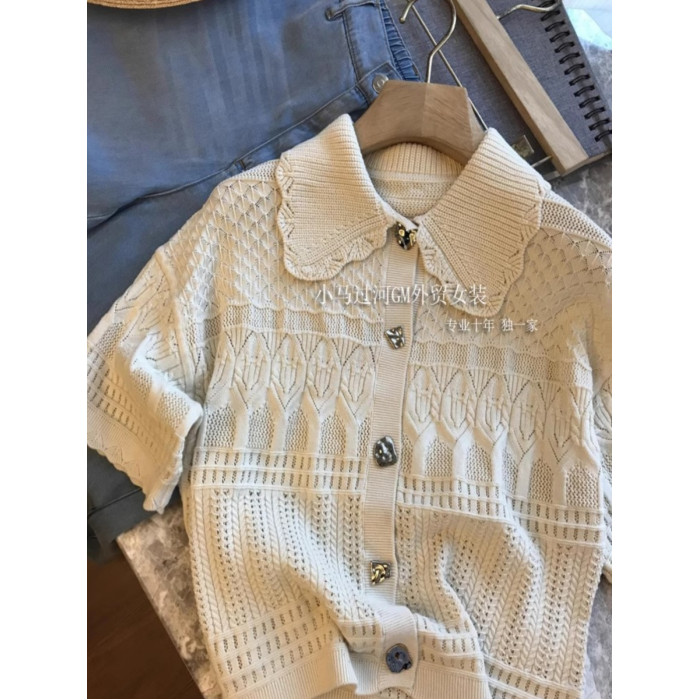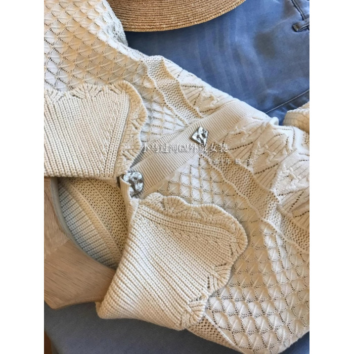 絕,純正的S*ndro單!!法式波浪邊重工縷空鉤花銀釦針織短袖開衫