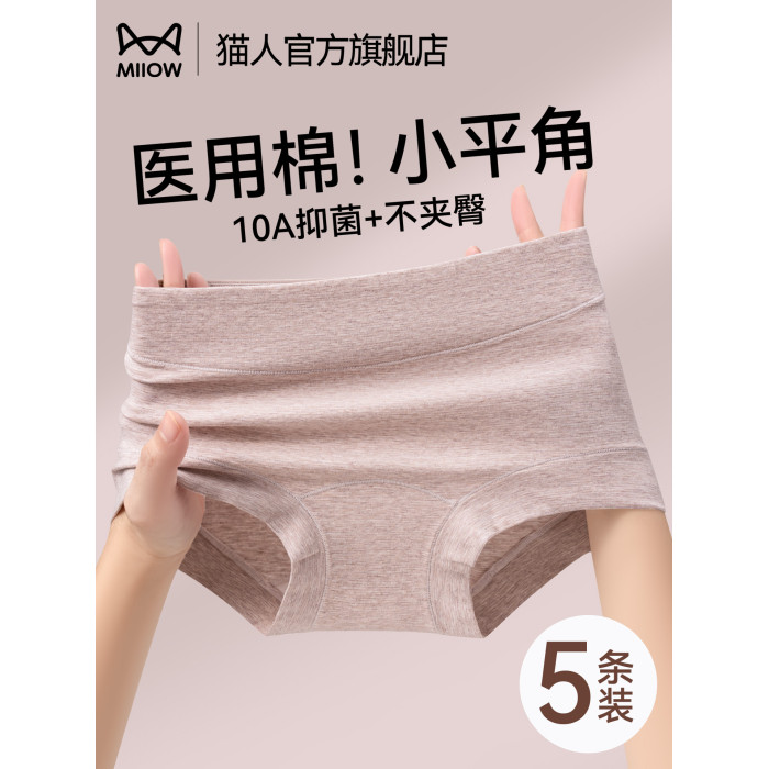貓人純棉平角內褲女士抑菌加長襠中腰包臀不夾臀大碼女生四角短褲