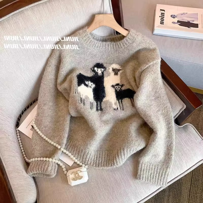 廣州十三行爆款推薦~秋冬裝韓系穿搭小羊刺綉軟糯洋氣針織毛衣女