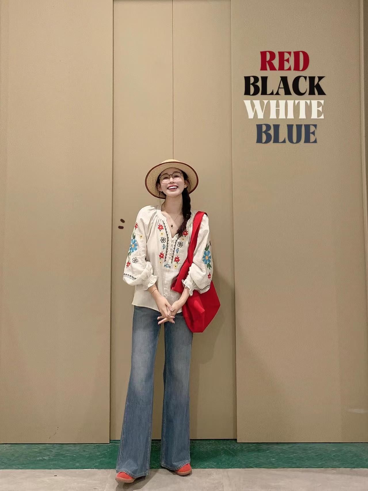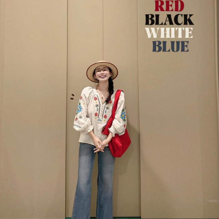 歡簡韻文藝綉花套頭襯衫女夏秋季新款設計感寬鬆休閒長袖防曬襯衣