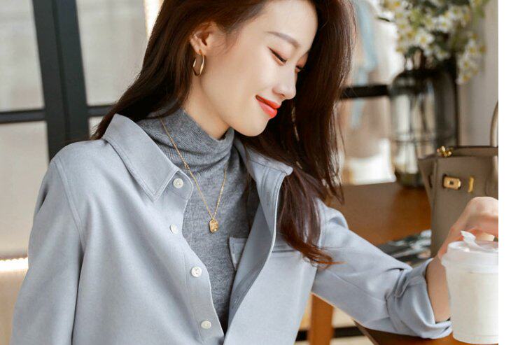 軟糯加厚磨毛襯衫女春秋2025新款長袖上衣曡穿內搭打底襯衣外套冬