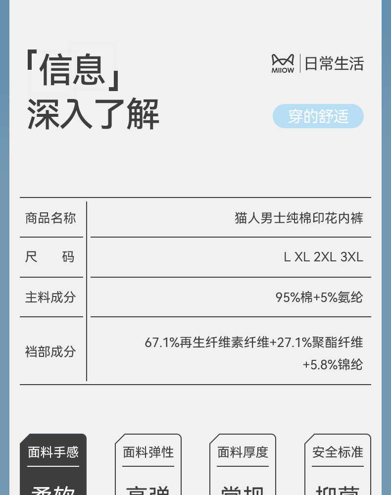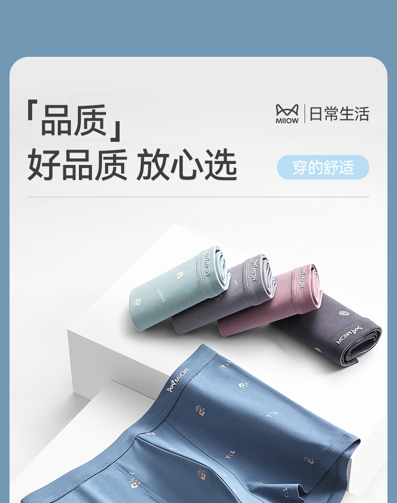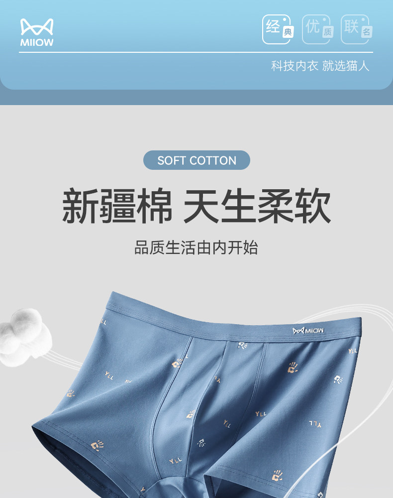 貓人純棉內褲男士四角褲夏季薄款男生短褲抑菌透氣平角褲男款潮DQ