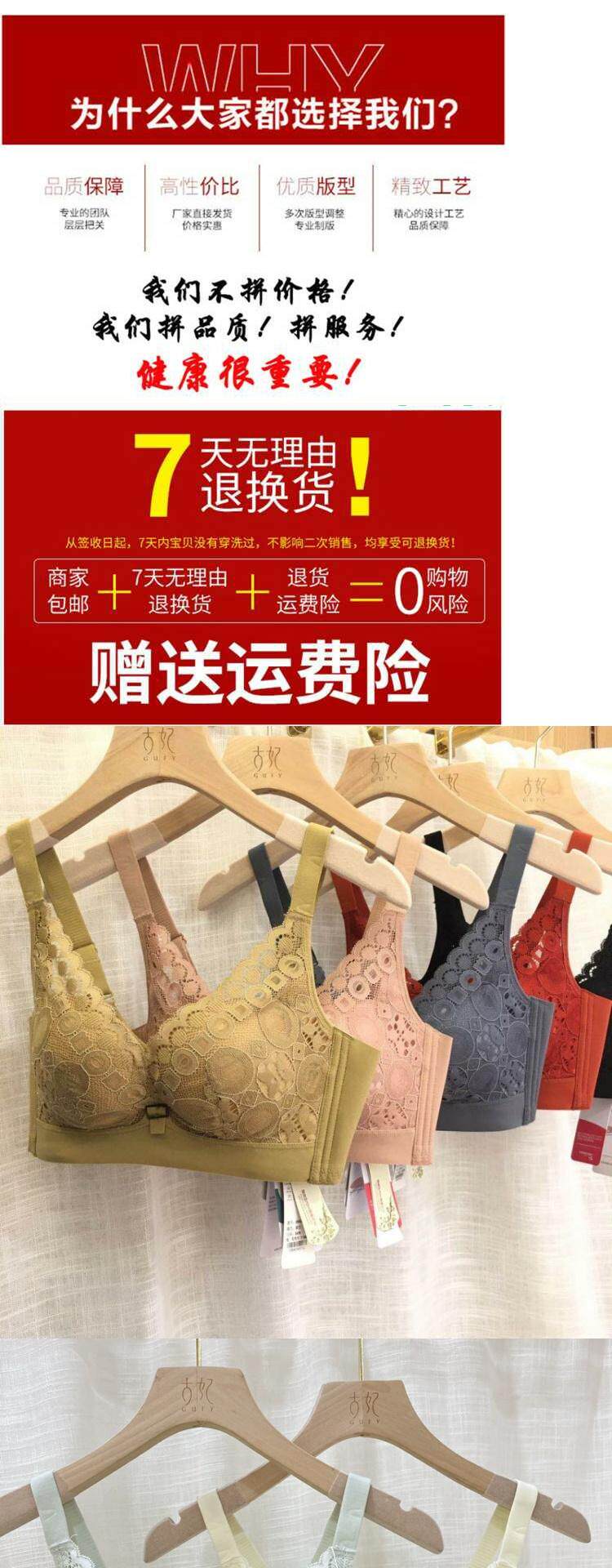古妃小胸聚攏顯大AB杯中厚杯無鋼圈調整型收副乳蕾絲文胸罩內衣女