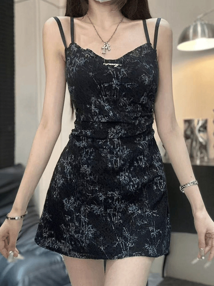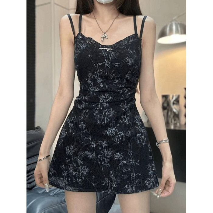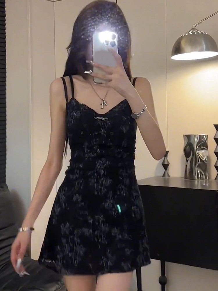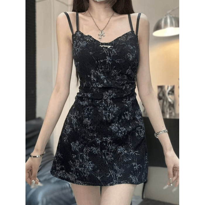辣妹風性感吊帶洋氣碎花連衣裙女今年流行爆款時尚收腰設計感短裙