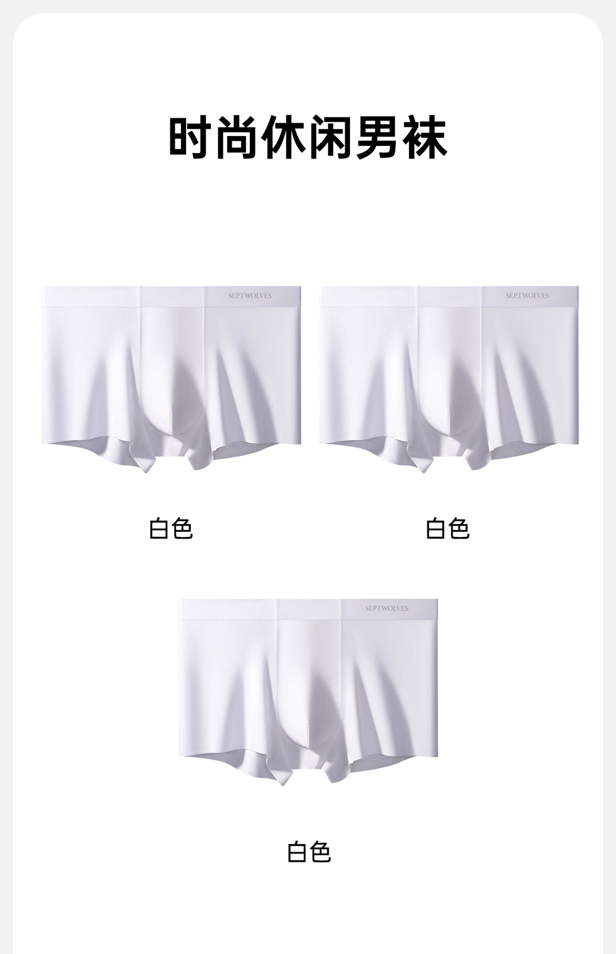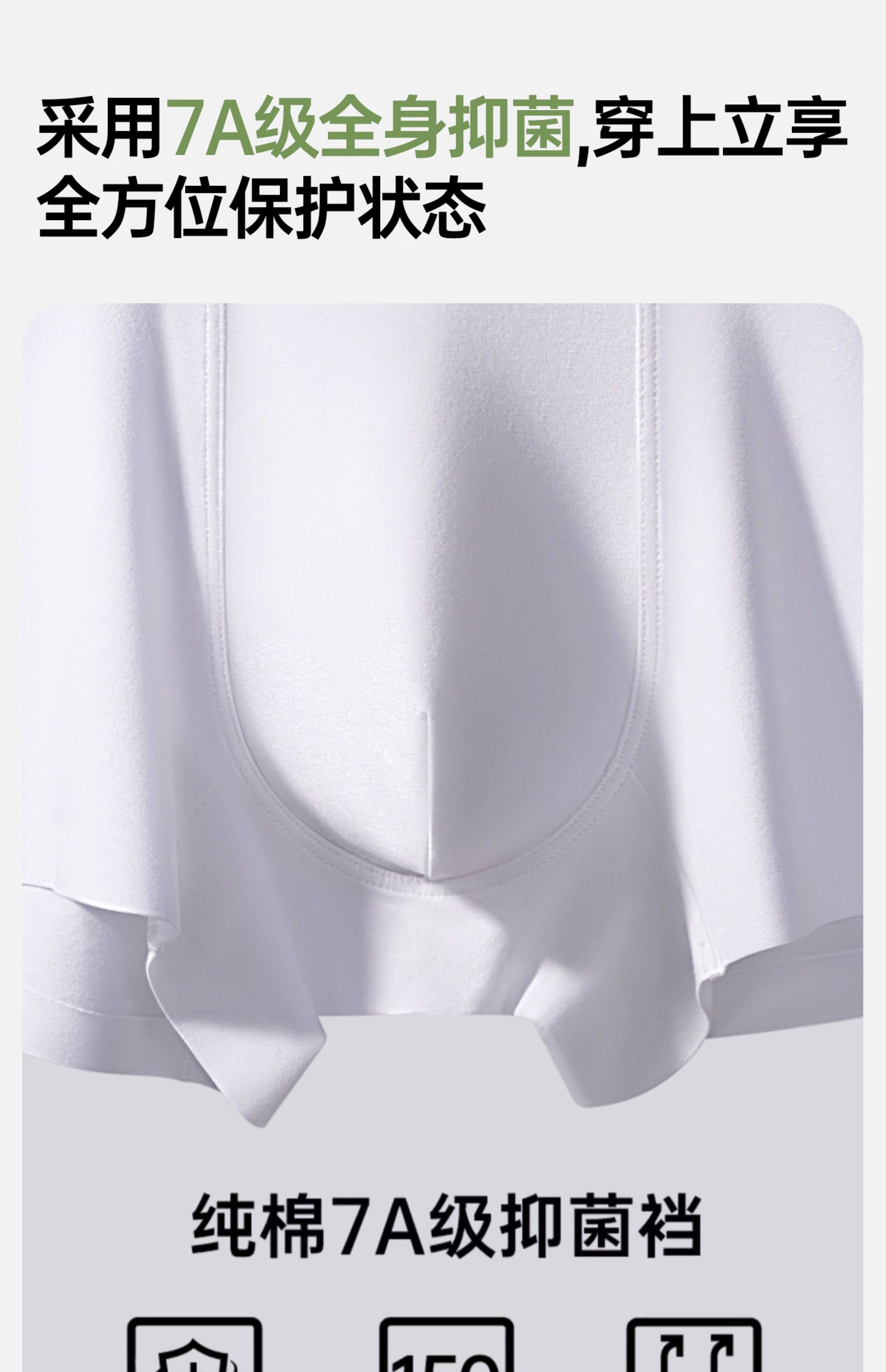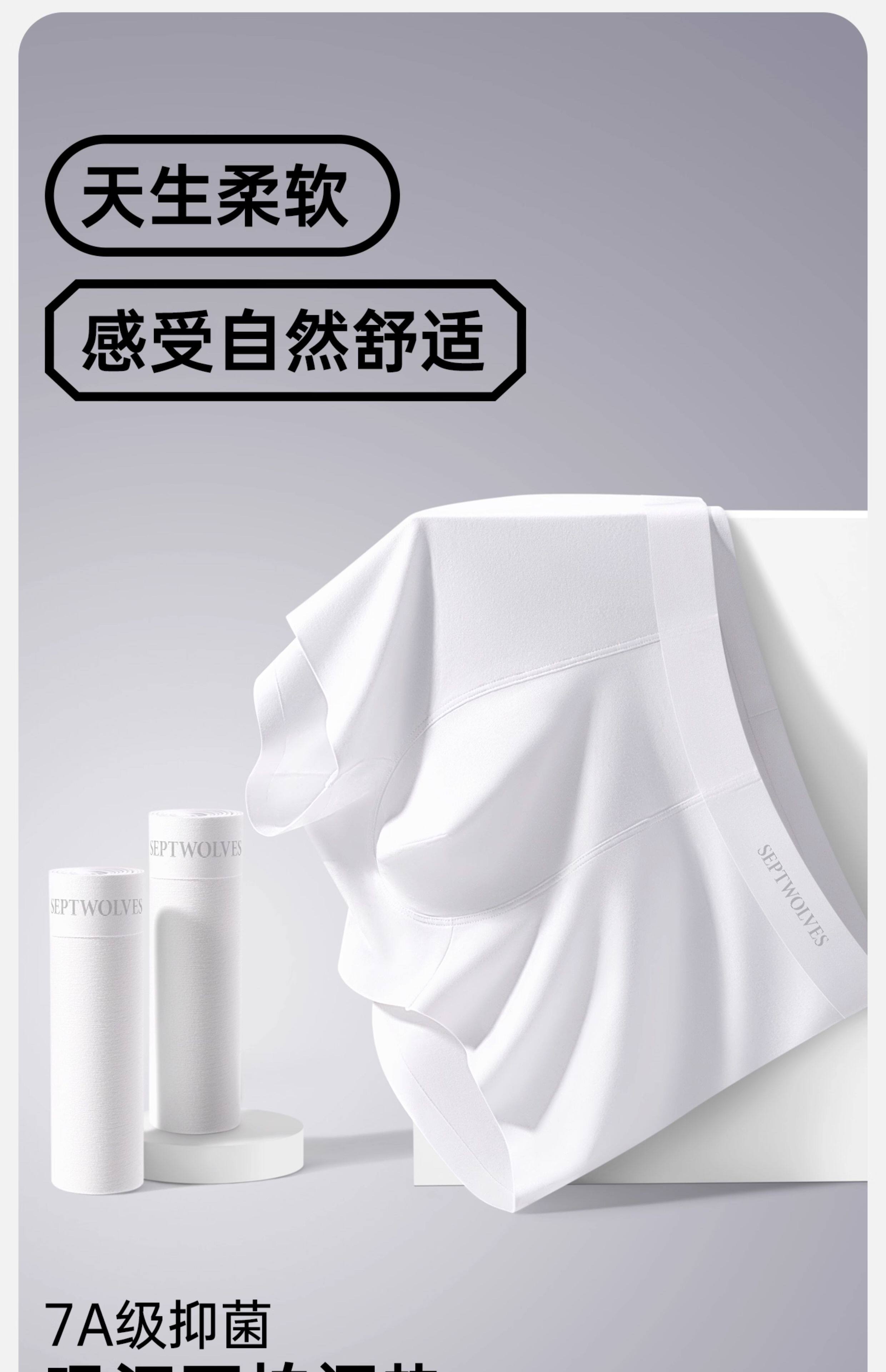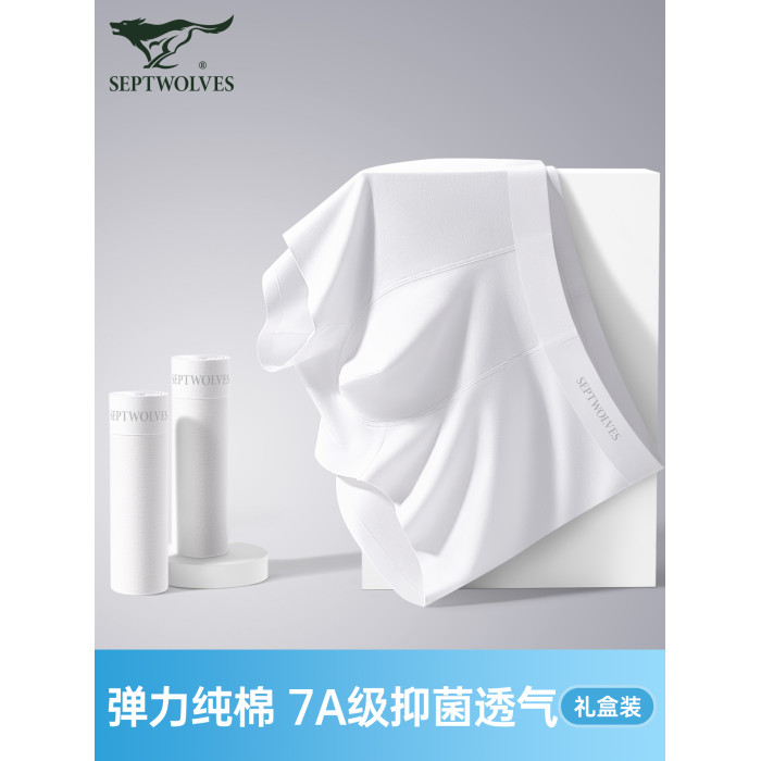 七匹狼男士內褲男生純棉抗菌四角褲頭男款全棉純白色淺色高檔短褲