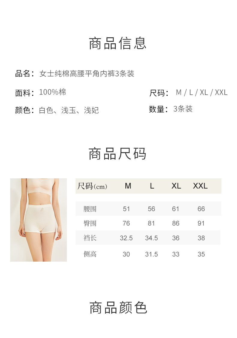 [3條]宜而爽純棉平角褲女高腰包腹提臀女士透氣100%新疆棉內褲女