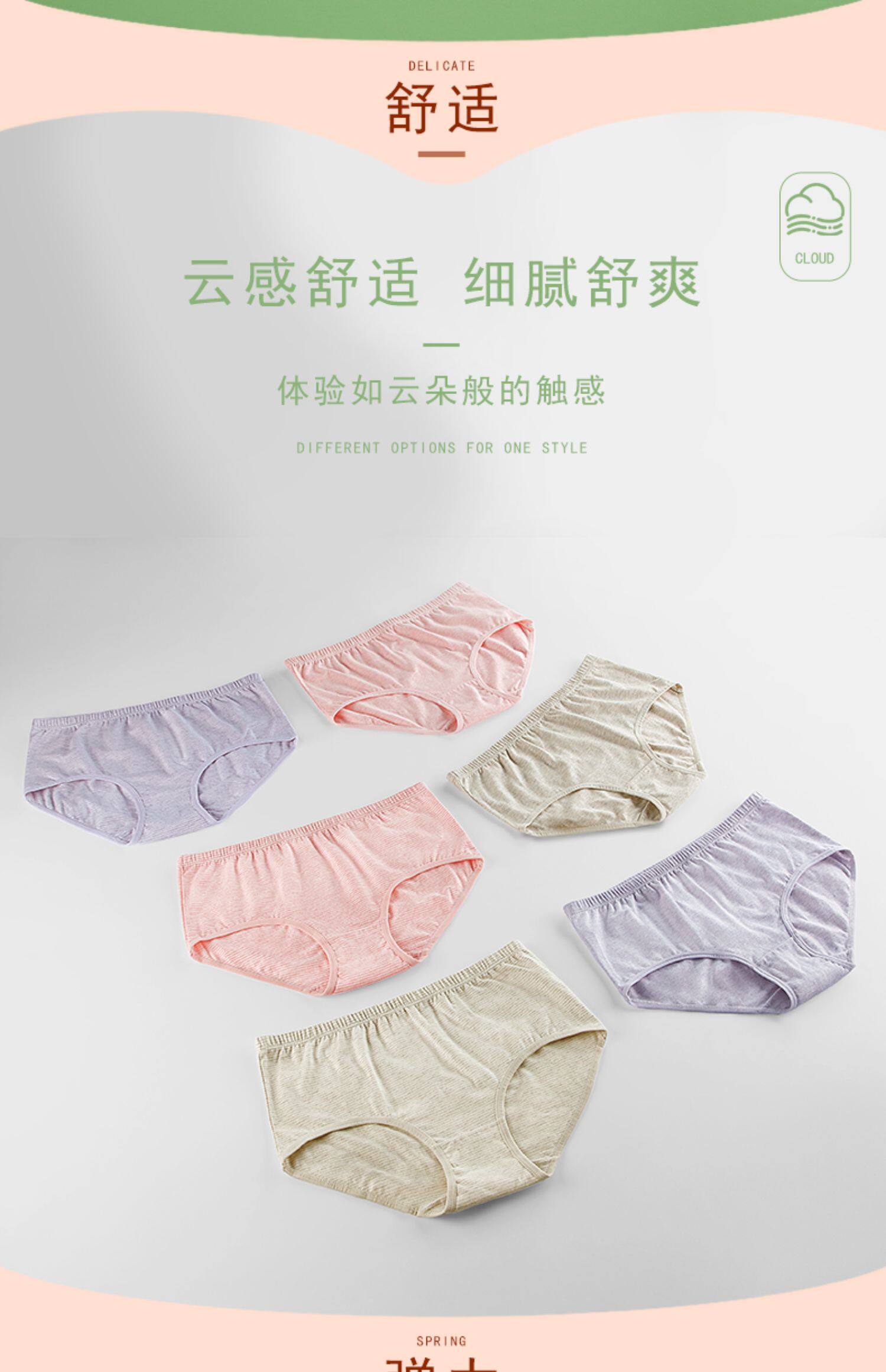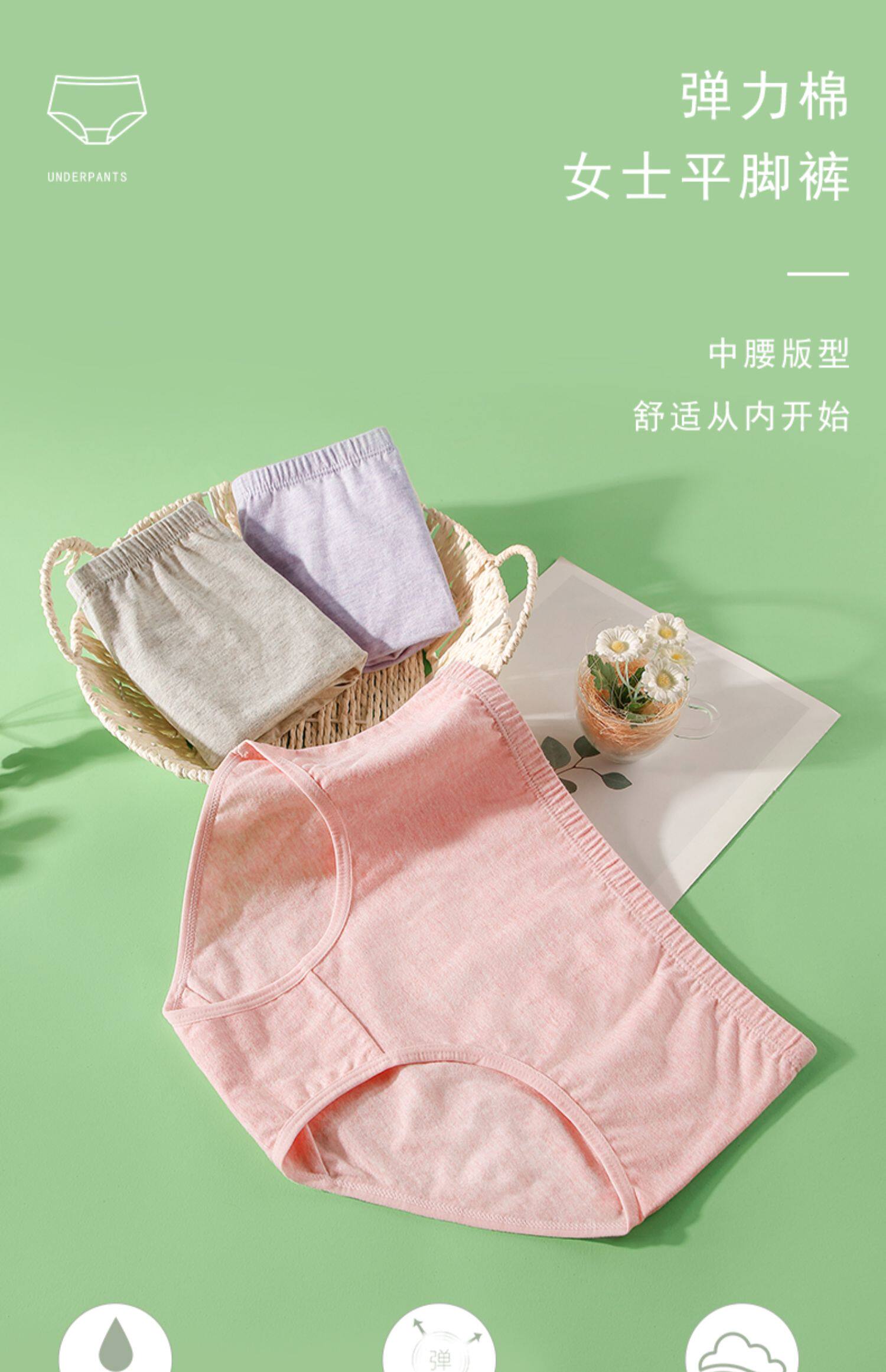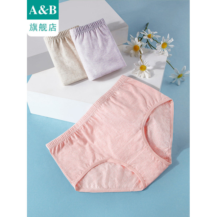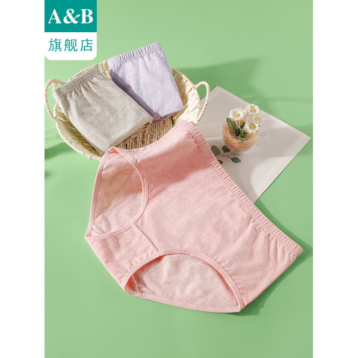 ab內衣【3條裝】女士平腳內褲彈力棉中高腰女短褲旗艦店A101