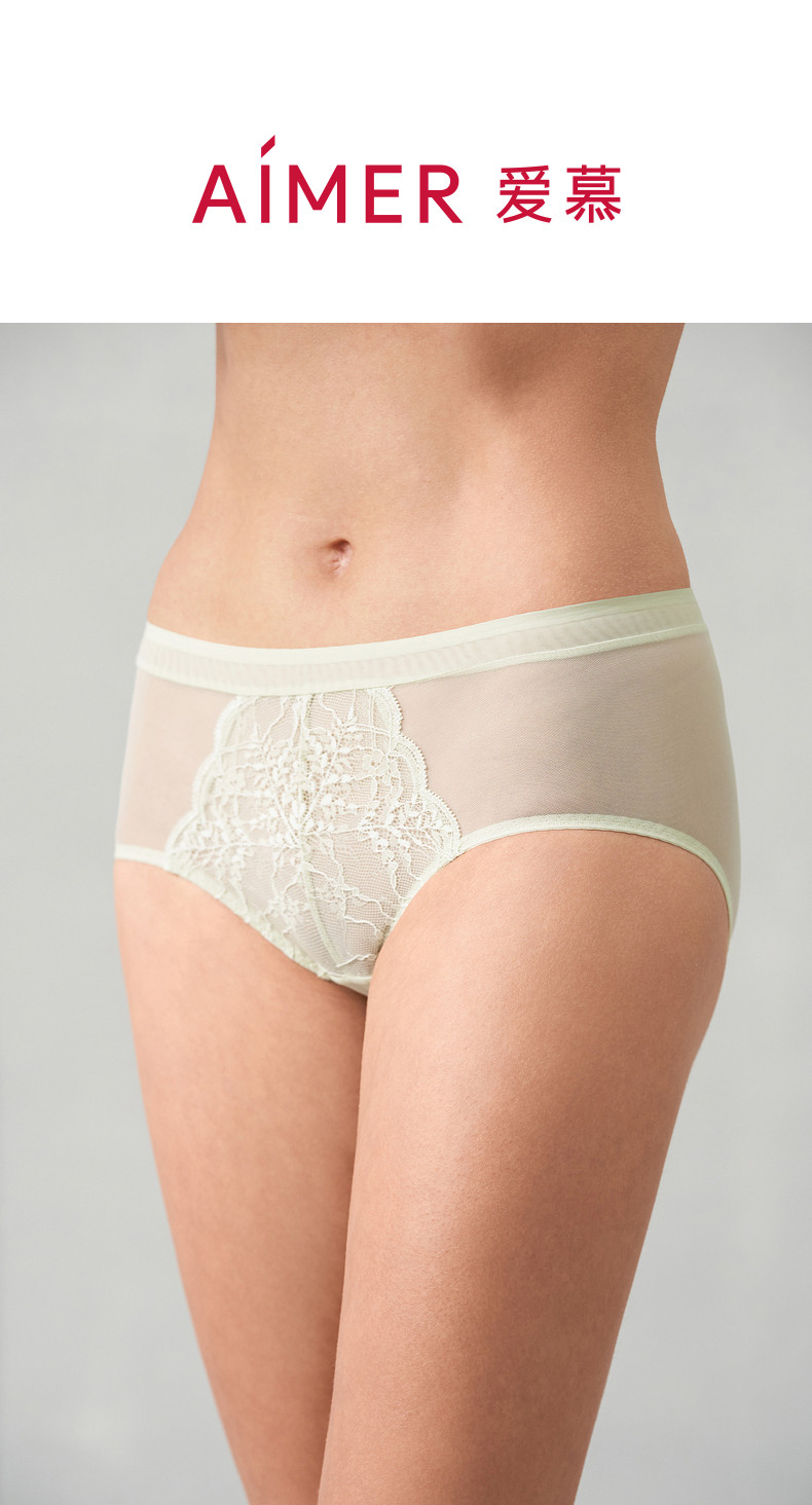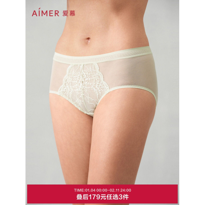 3條179元|愛慕小蒼蘭內褲女棉質底襠蕾絲網紗中腰平角內褲