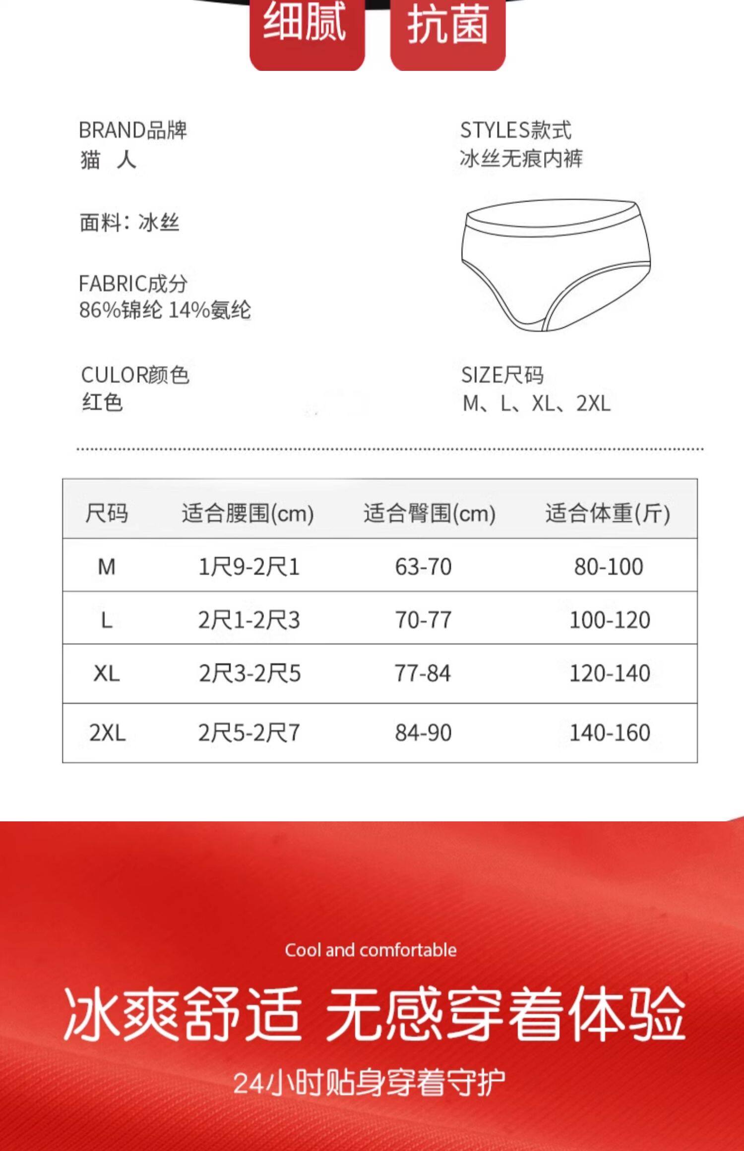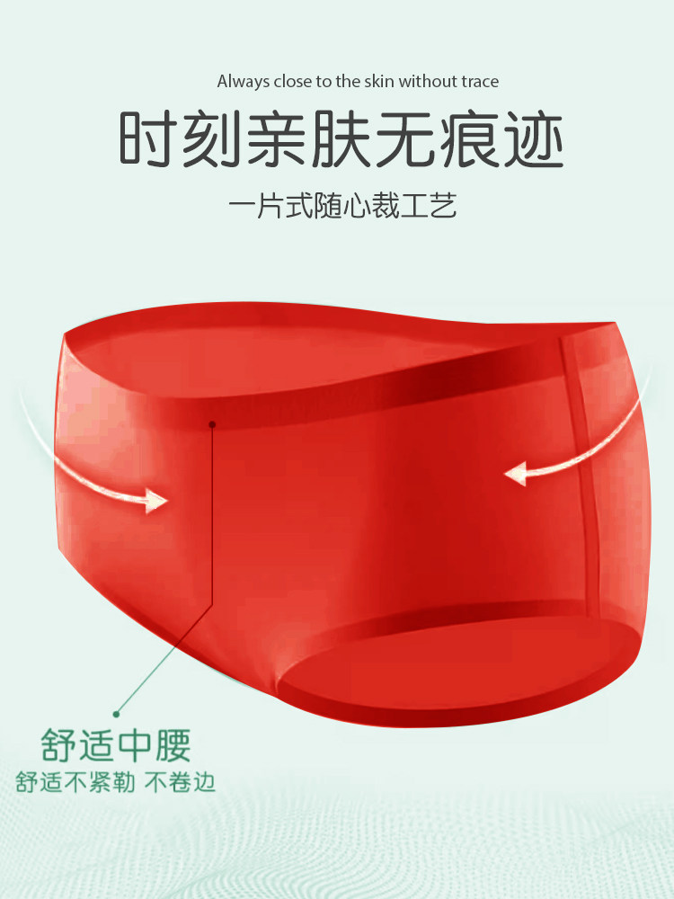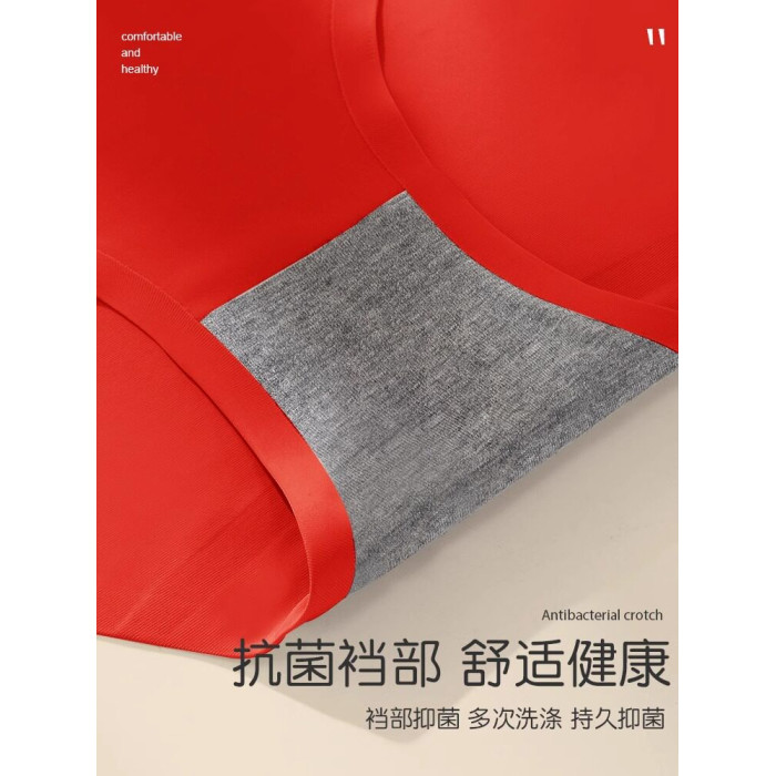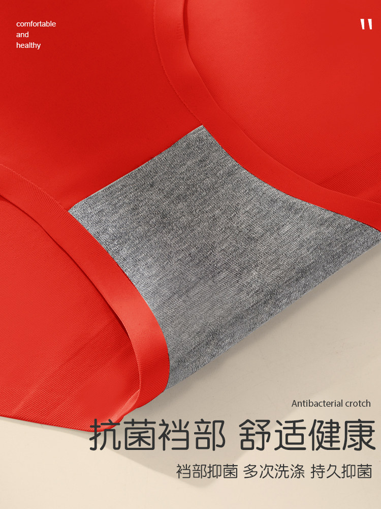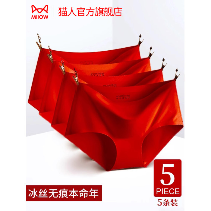 貓人大紅色本命年內褲女士夏季薄款冰絲無痕中腰少女生結婚三角褲