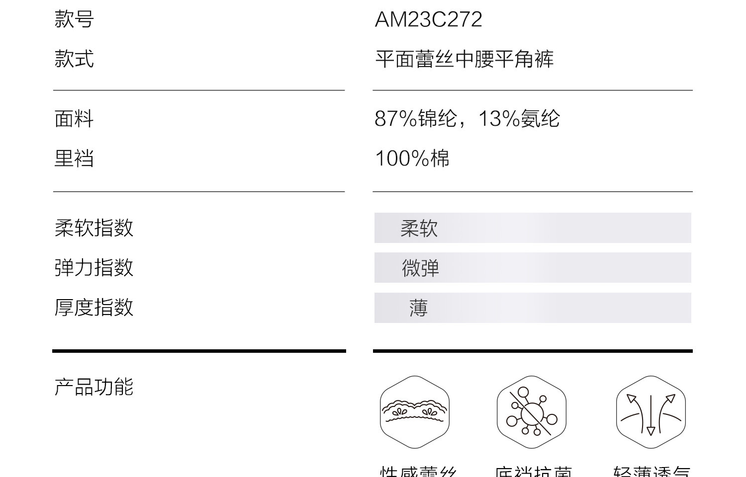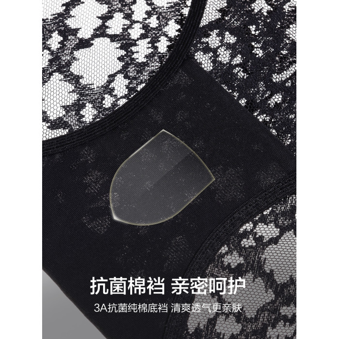 3條179元|愛慕蕾絲貼貼內褲女棉質底襠平面蕾絲中腰平角褲