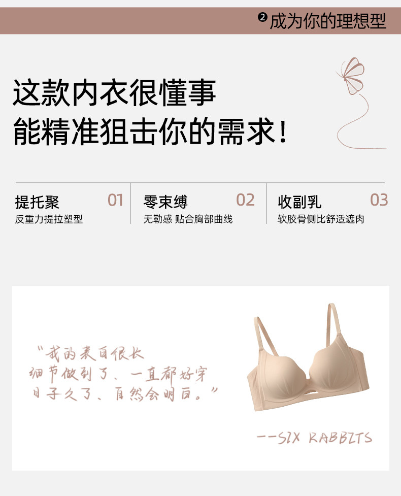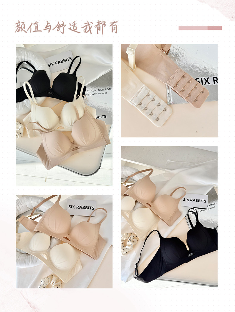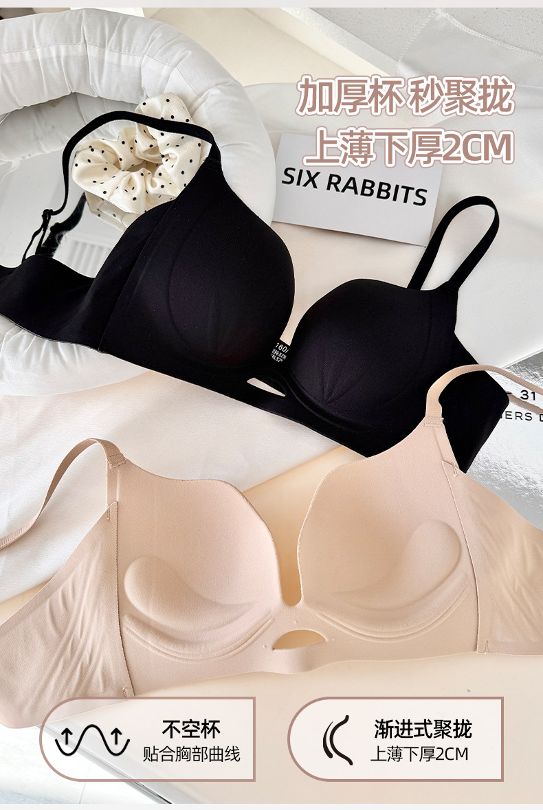 六隻兔子無痕內衣女小胸聚攏升杯顯大胸罩無鋼圈收副乳防下垂文胸