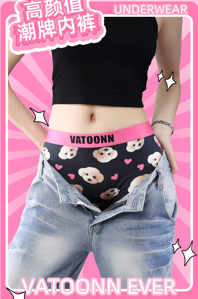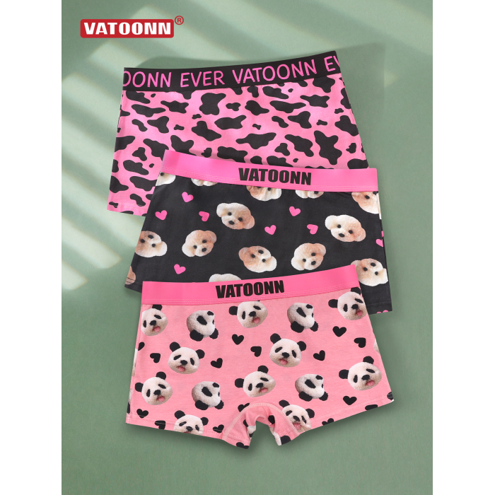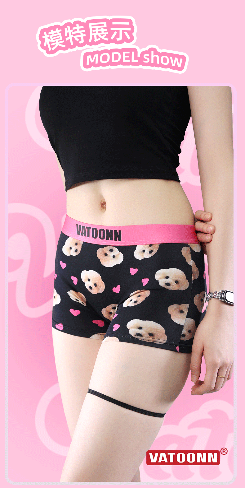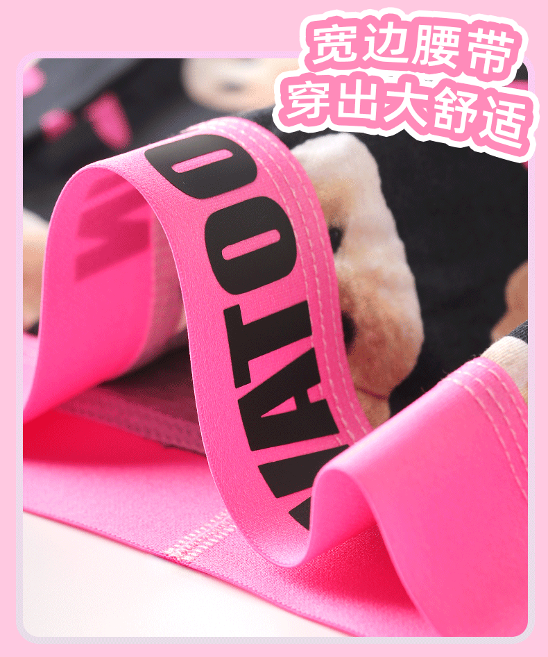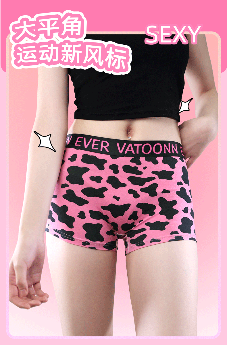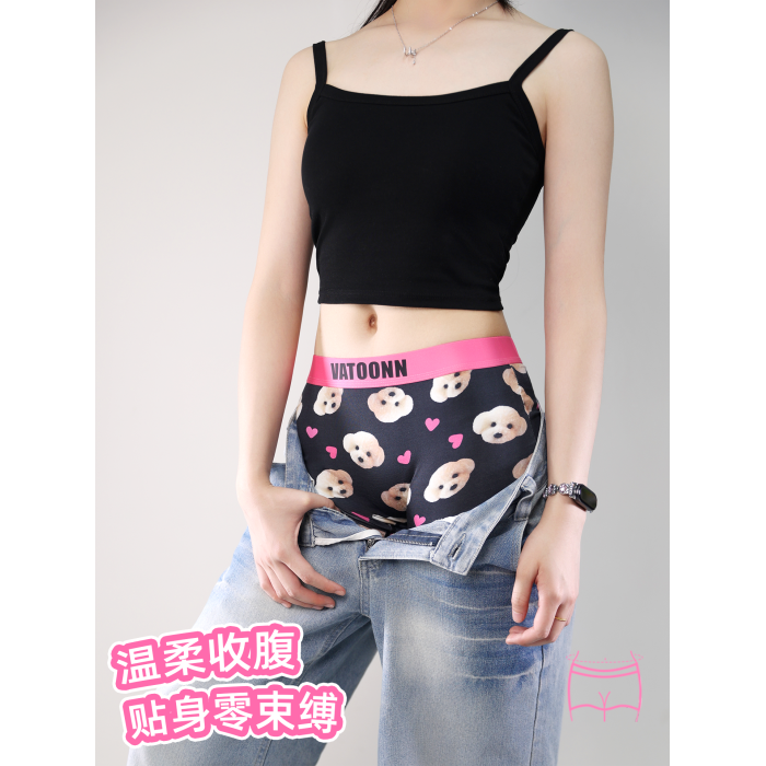 女士平角褲純棉內褲中腰抗菌親膚短褲透氣可愛印花寬腰帶收腹新款