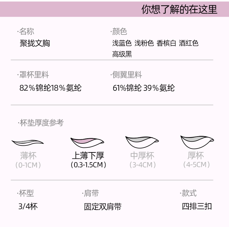 | 罩杯款式 | 3/4罩杯 |