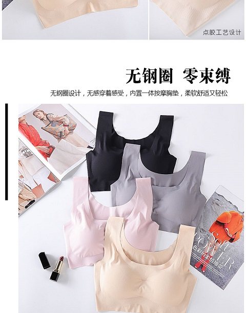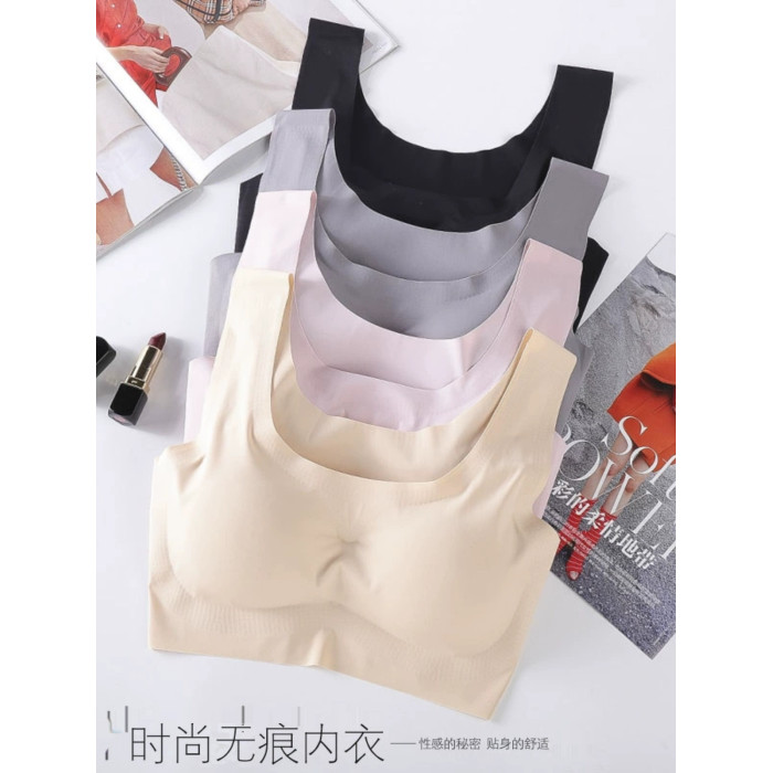 無痕內衣女一片背心式無鋼圈運動美背冰絲大碼睡眠文胸罩夏季薄款