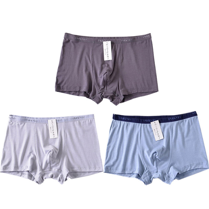 3條裝 莫代爾內褲男日系輕薄透氣柔軟低腰窄腰邊無痕男士平角褲衩