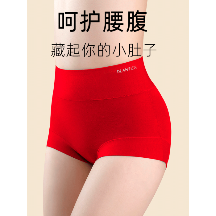 蝶安芬紅色高腰女士內褲女本命年彈力棉收腹包臀桑蠶絲抗菌襠透氣