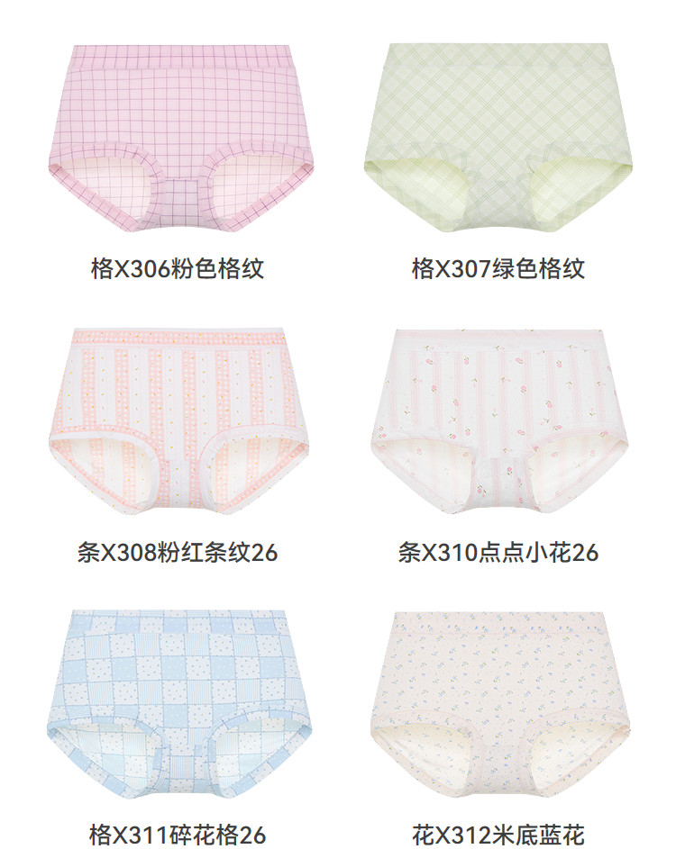 三福內褲女中腰包臀內褲清新滿版印花輕薄純棉底襠半平角褲473254