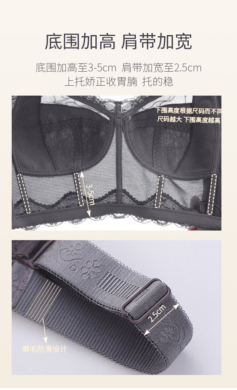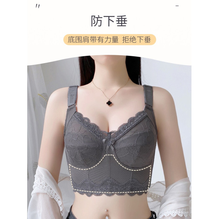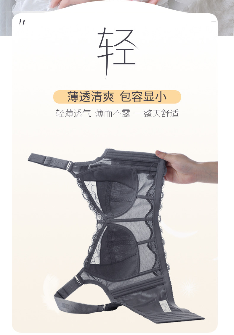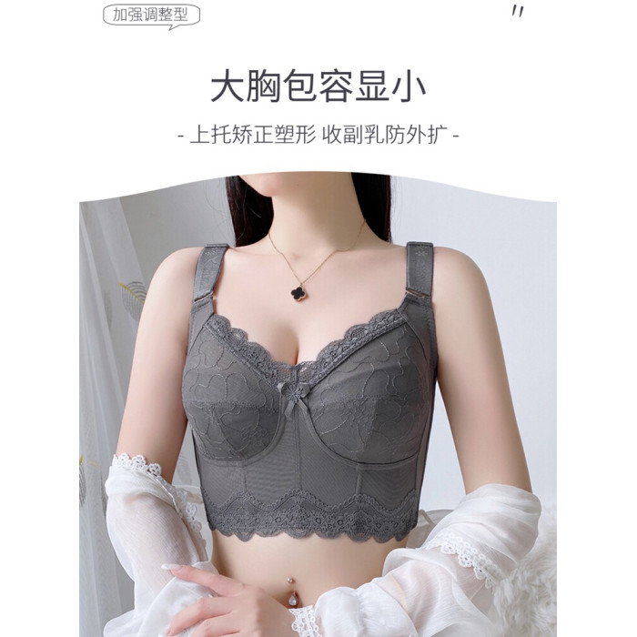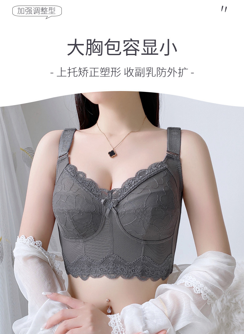 內衣女夏季薄款大胸顯小聚攏縮胸防下垂收副乳大碼無鋼圈文胸胸罩