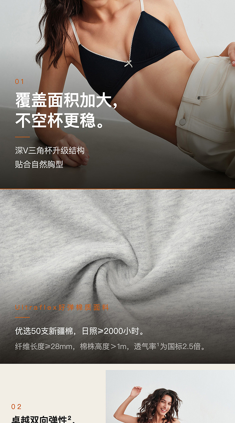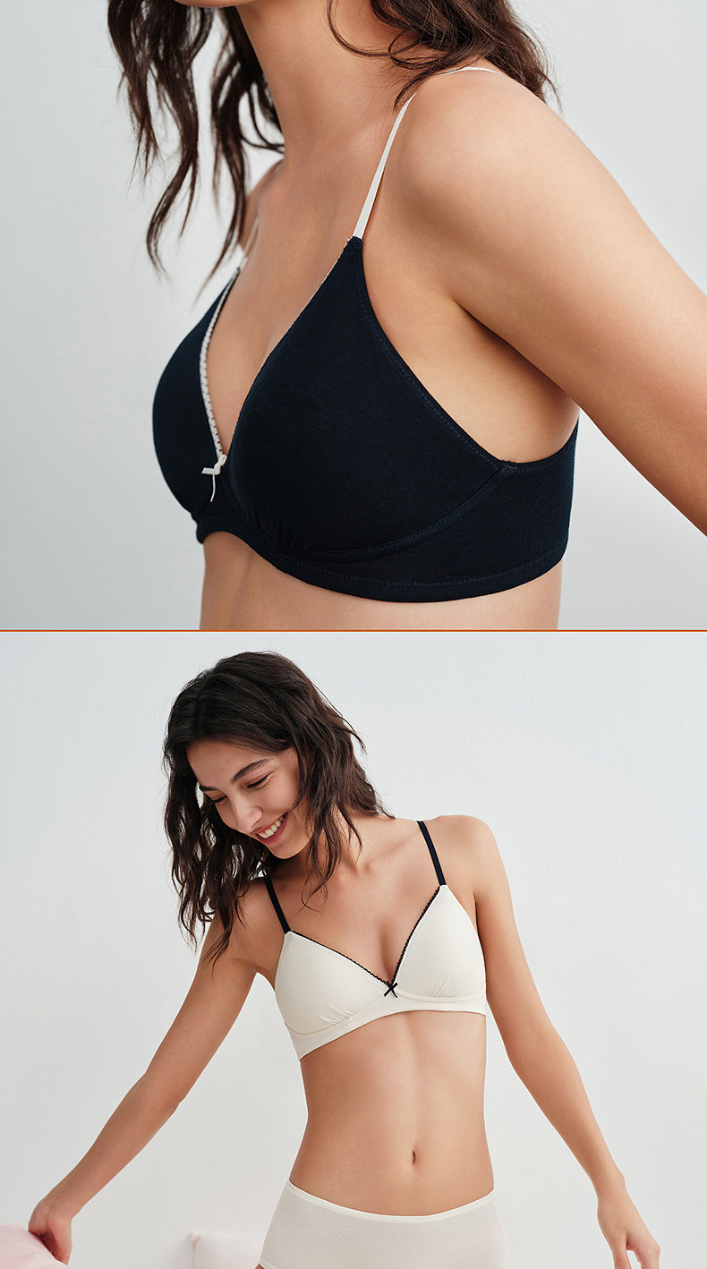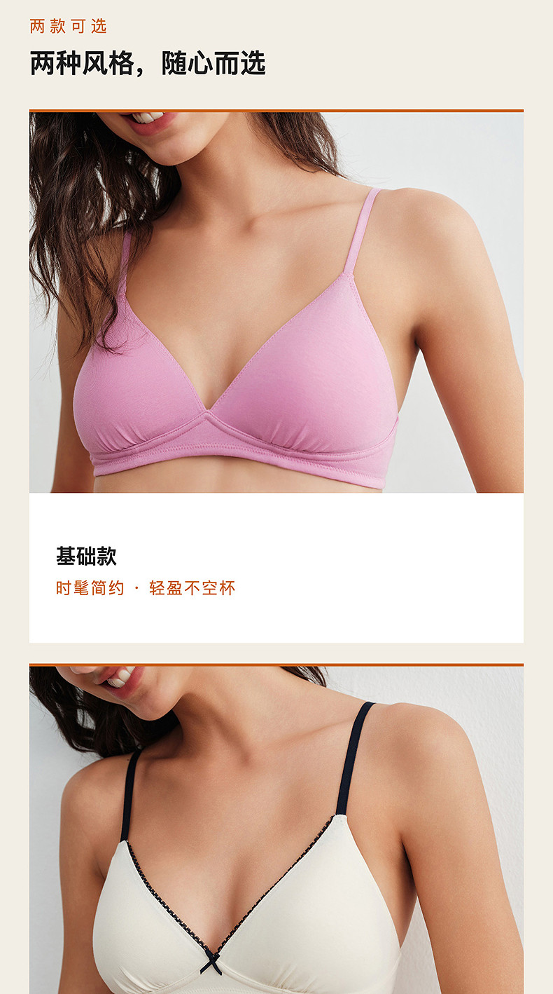 內外橙標好彈棉質三角杯文胸小胸細肩帶無鋼圈內衣秋季薄款NEIWAI