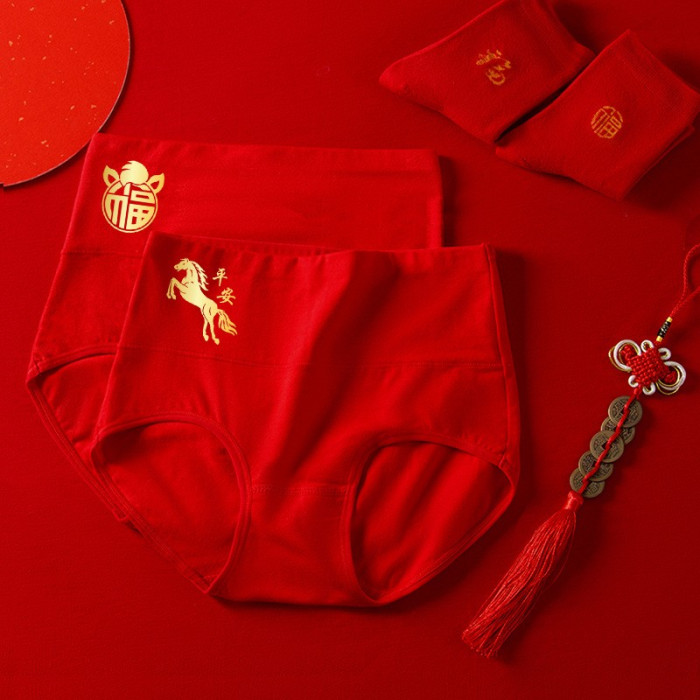 【4條裝】2026馬年大紅色內褲女純棉本命年禮盒高腰三角褲頭結婚