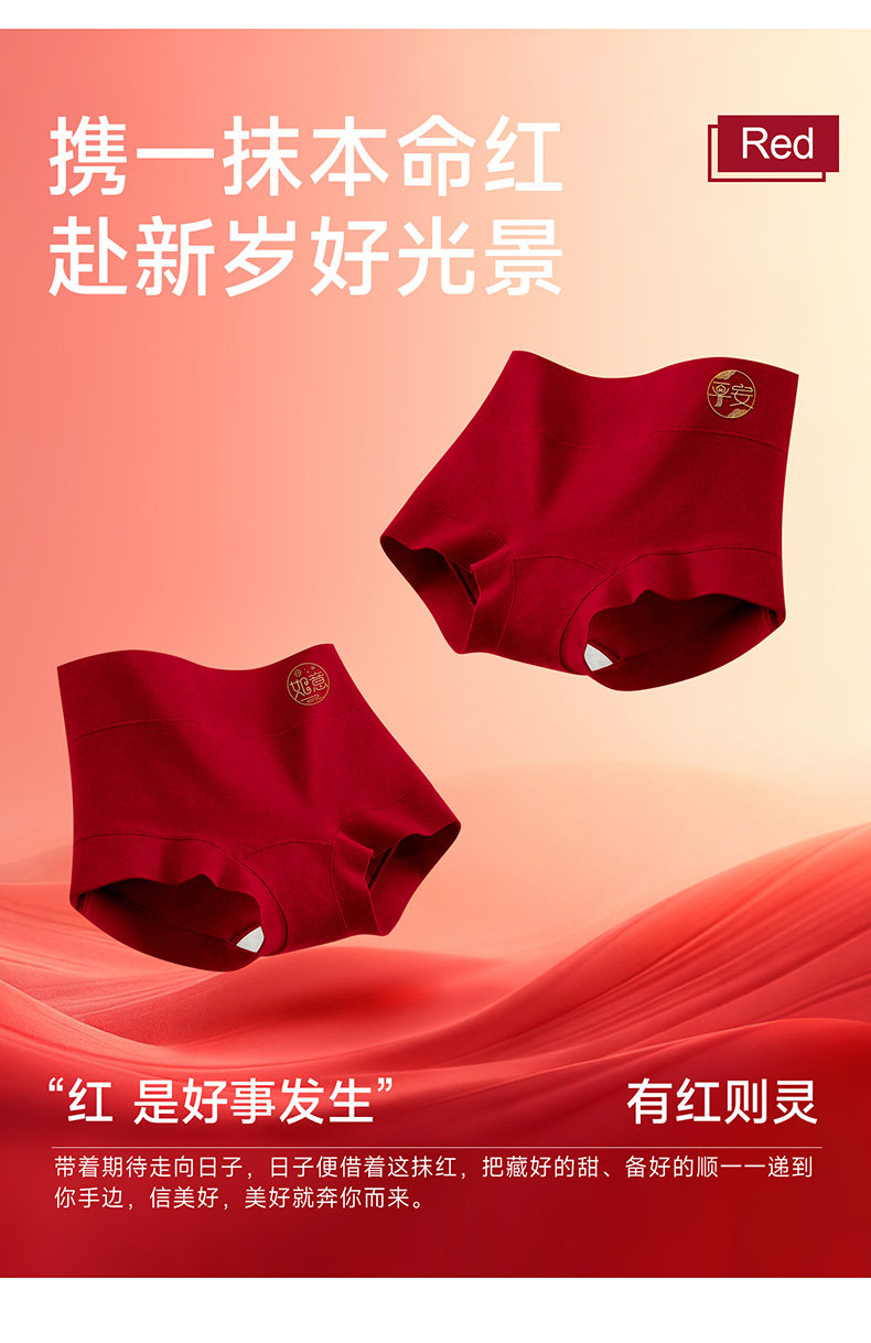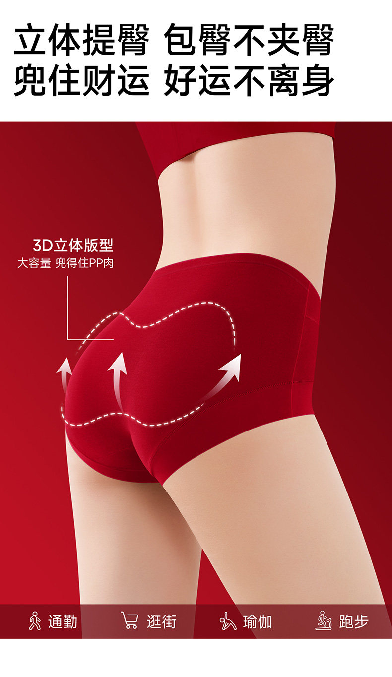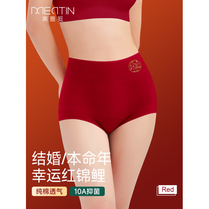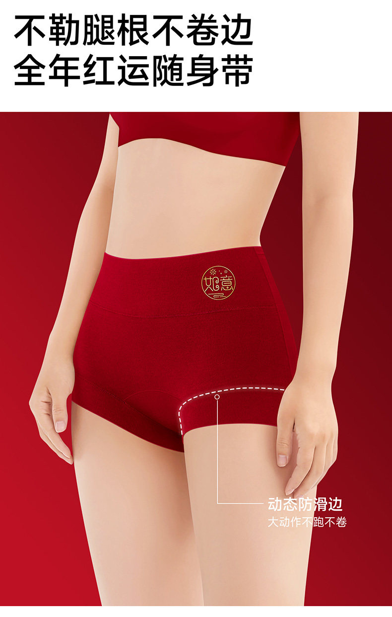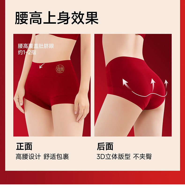 2026年屬馬紅色本命年內褲女高腰收腹純棉7a抗菌四角平角結婚新娘