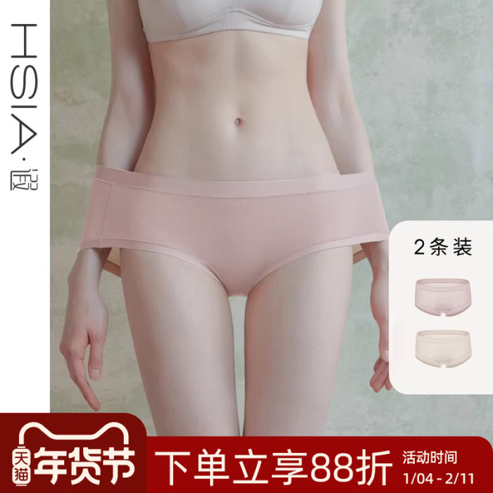 遐【高彈力包臀】大碼內褲女2條裝純棉襠不夾屁屁薄款中腰平角褲