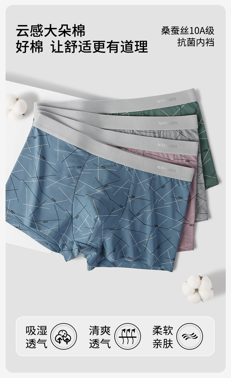 南極人男士內褲純棉男生四角平角短褲頭抗菌男款2026新款男式運動