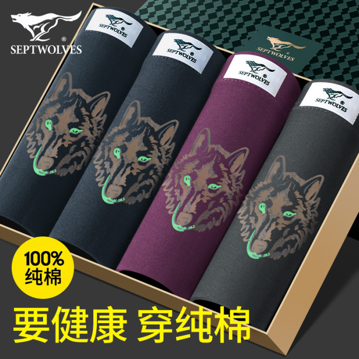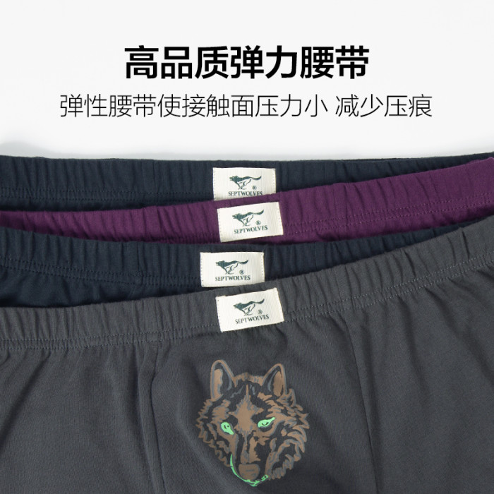 七匹狼純棉男士內褲男100全棉透氣寬鬆大碼四角褲平角褲短褲頭