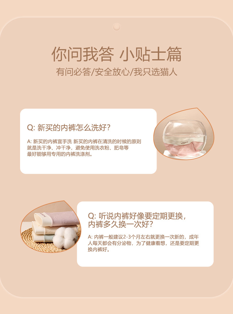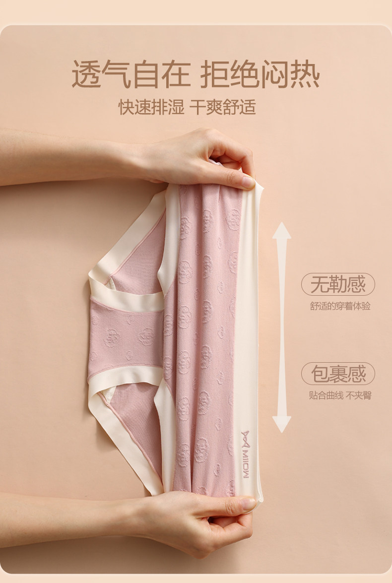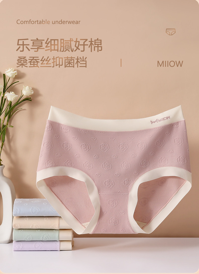 貓人內褲女士純棉抗菌含桑蠶絲底檔中腰無痕少女生新款三角短褲頭