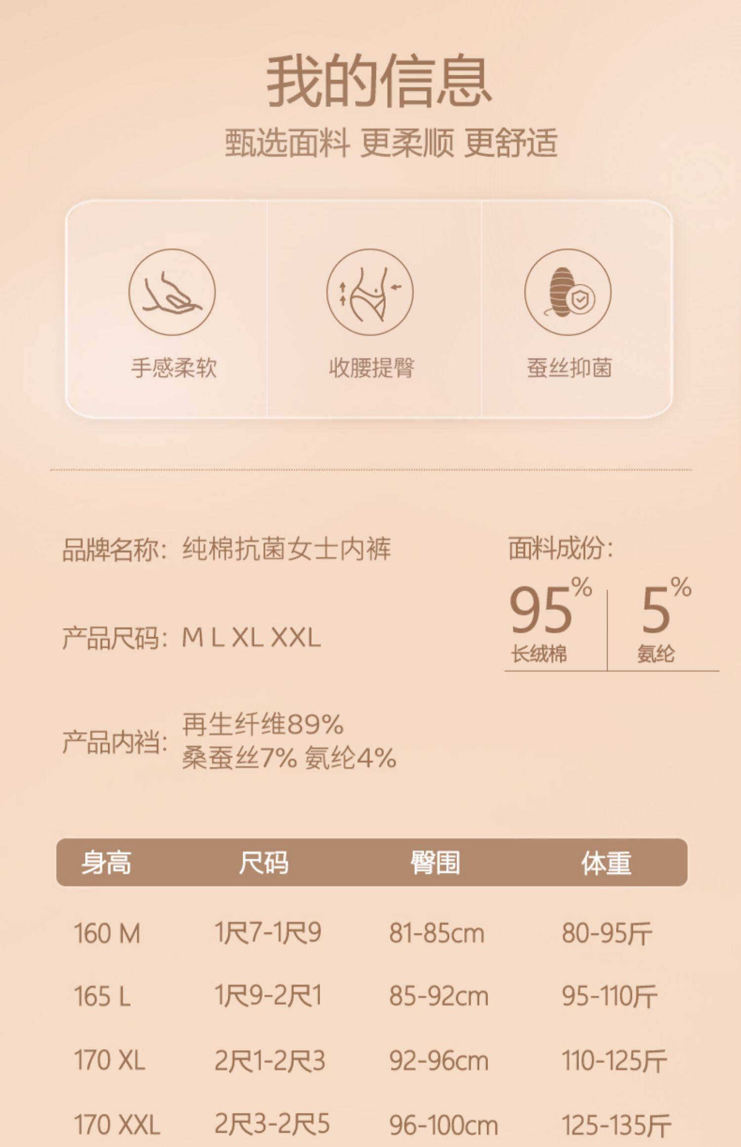 | 襠部材質成分 | 再生纖維素纖維89% 桑蠶絲7% 聚氨酯彈性纖維(氨綸)4% |