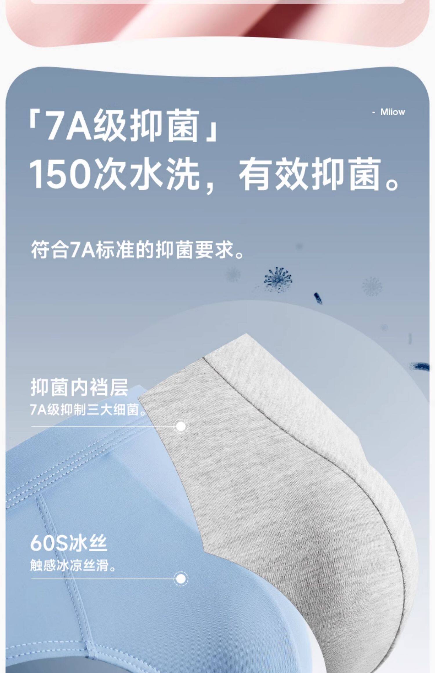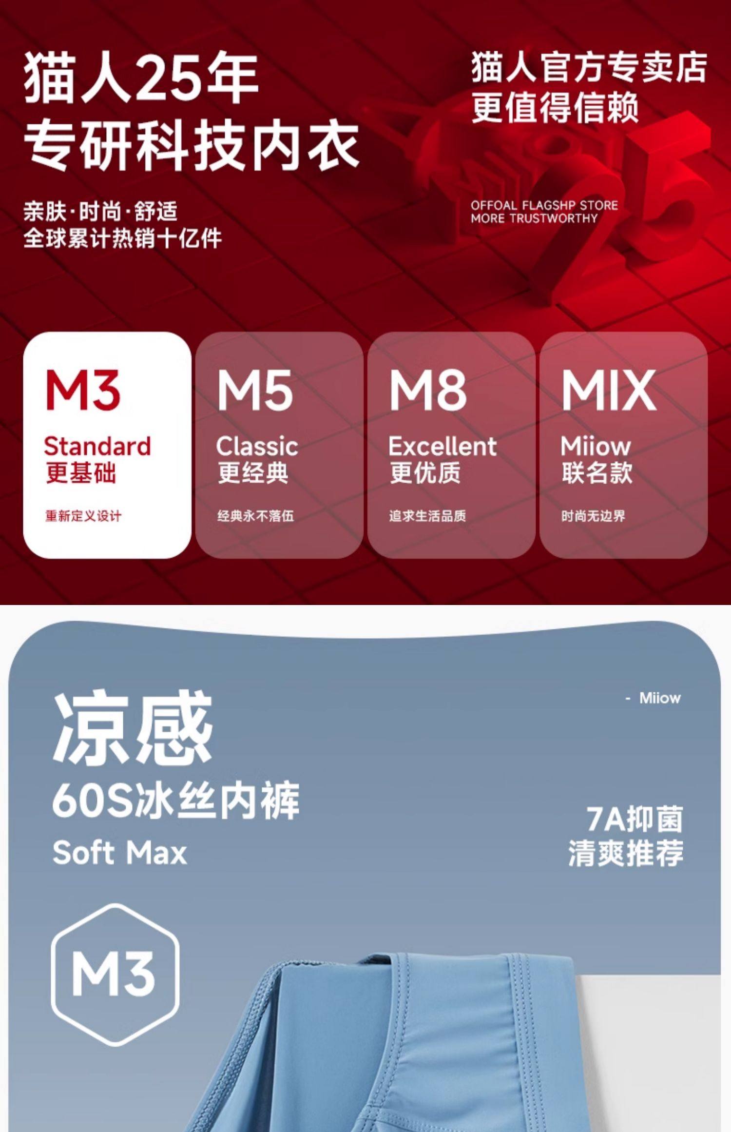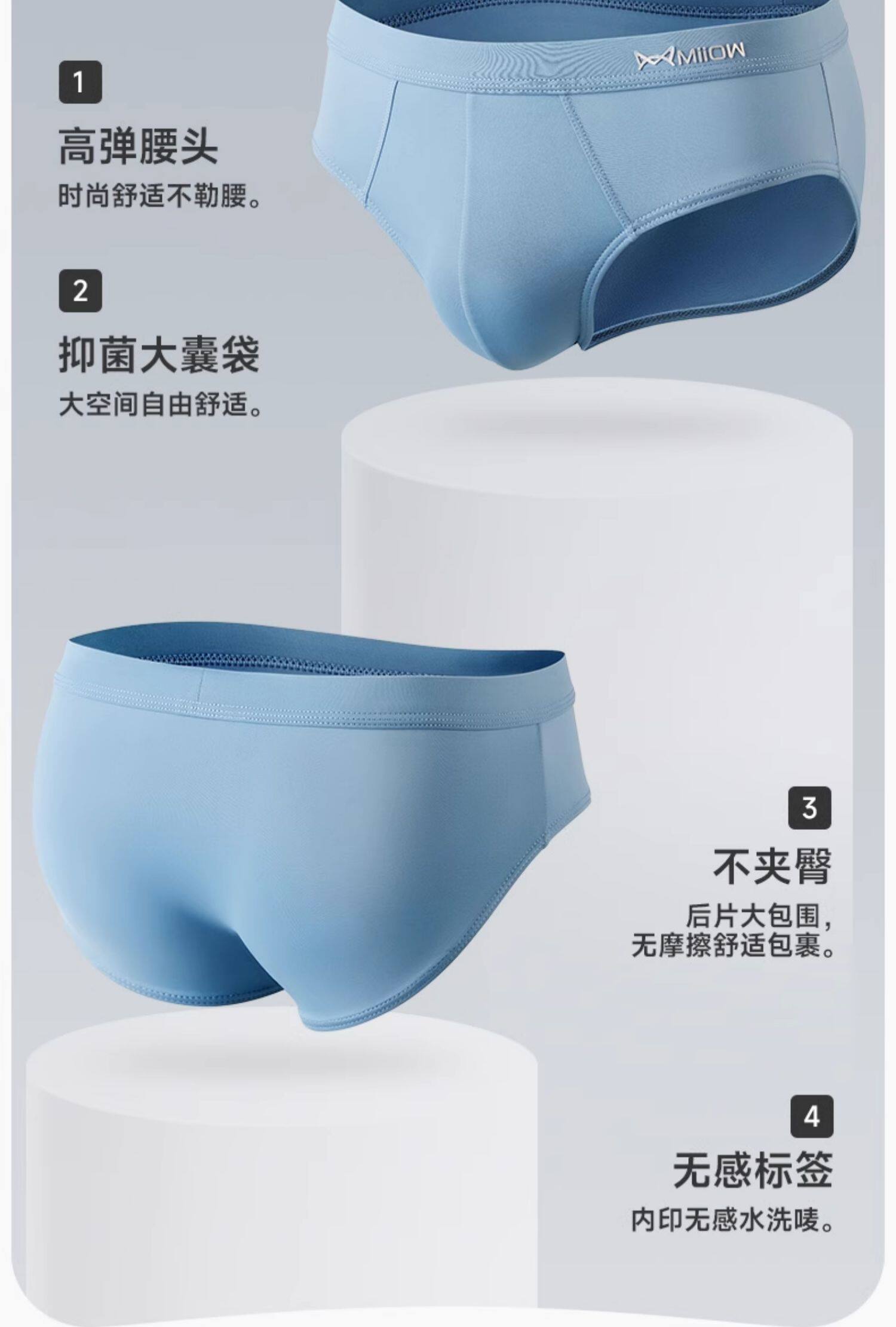 貓人冰絲涼感男士內褲三角短褲薄款透氣抗菌襠褲衩男生新款底褲頭